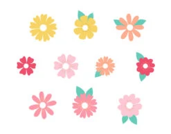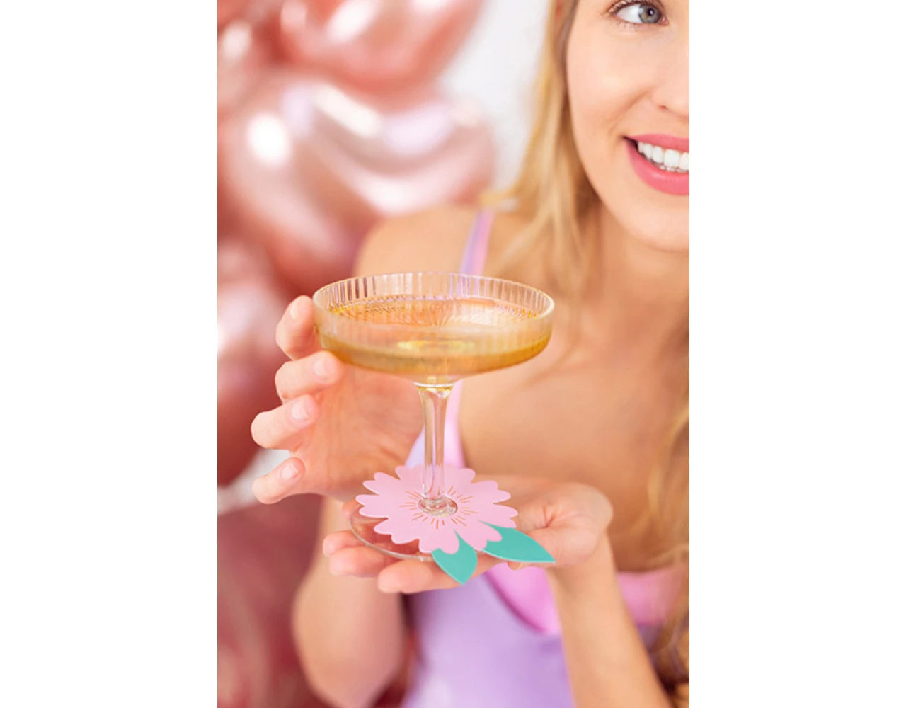 Plaatskaartjes voor drinkglazen Bloemen, mix van kleuren, set bevat 10 verschillende dessins (1 stuk van elk dessin), formaat ca. 5,5-9,5 x 6-10 cm.