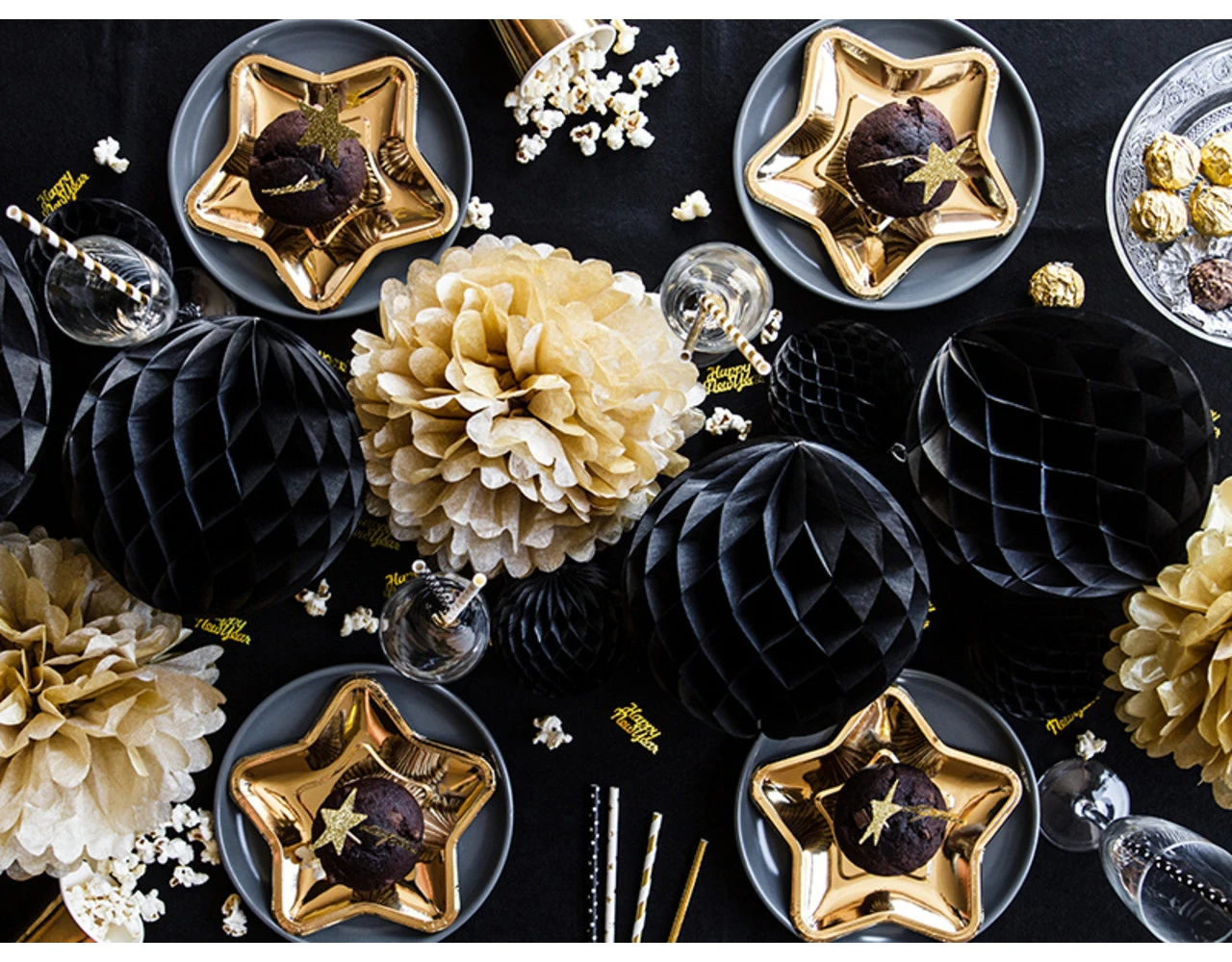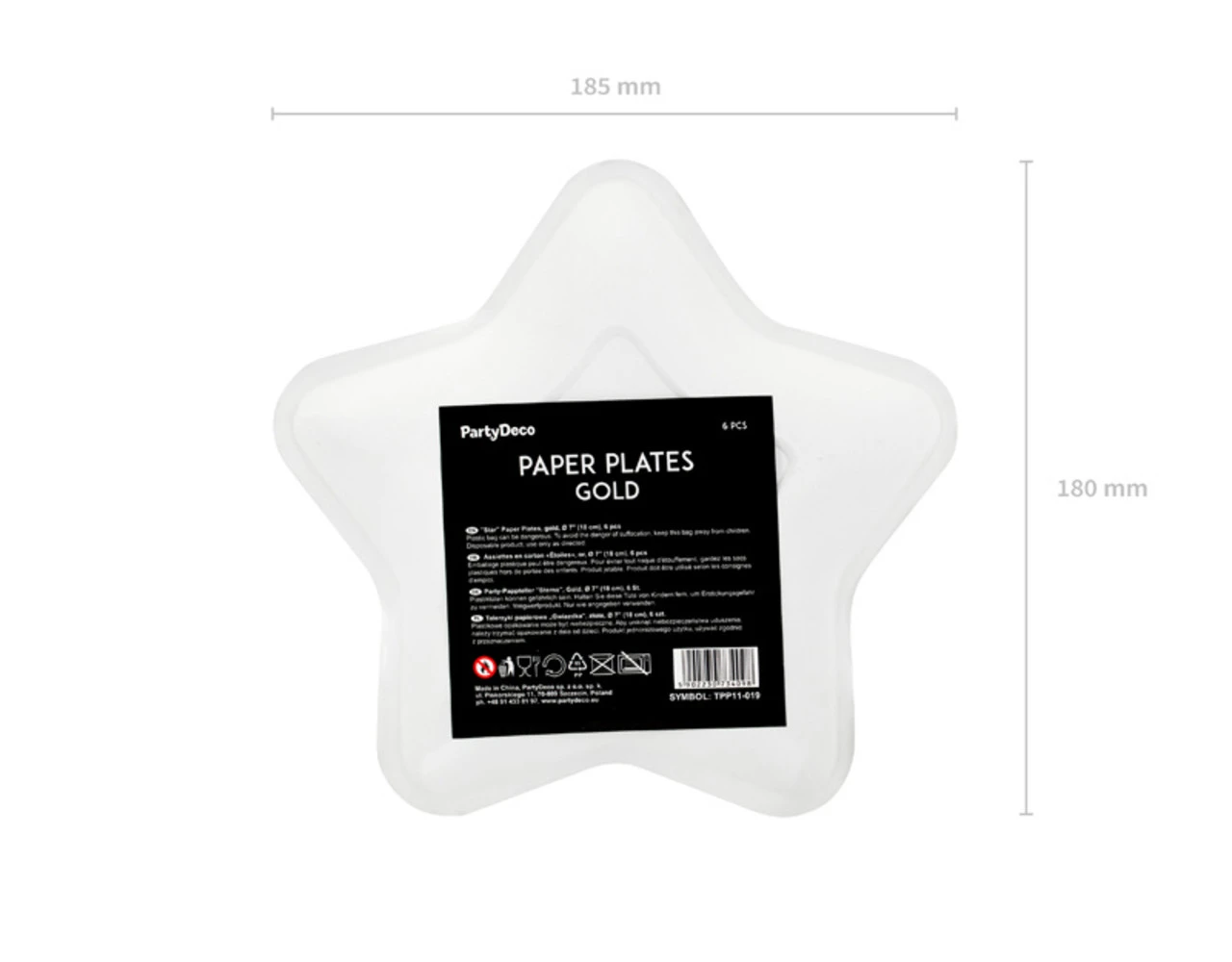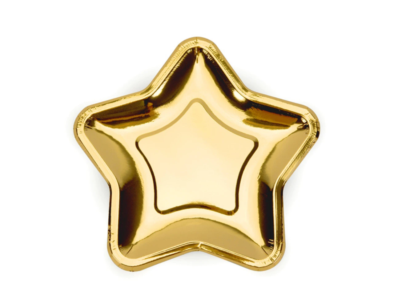 Borden Star gemaakt van goudkleurig metallic papier, diameter ongeveer 18 centimeter (7”).