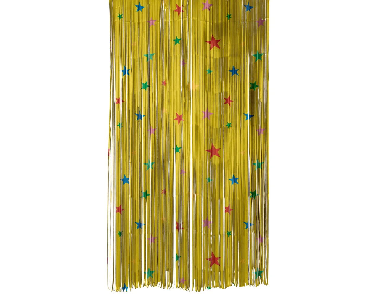 Deurgordijn Folie Retro Sterren – 2×1 m. Inhoud: 1 deurgordijn. Kleur: Goudkleurig. Bijvoorbeeld te gebruiken tijdens de volgende feestgelegenheid/feestgelegenheden: Verjaardag en Kinderfeestje. Het artikel is 2×1 meter. Het artikel is gemaakt van folie.