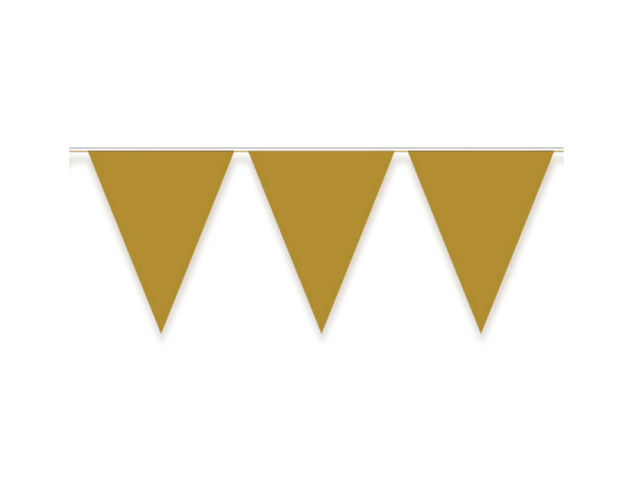 Gouden Vlaggenlijn – 10 meter. Inhoud: 1 vlaggenlijn van 10 meter. Kleur: Goudkleurig. Bijvoorbeeld te gebruiken tijdens de volgende feestgelegenheid/feestgelegenheden: verjaardag, kinderfeestje. Deze slinger is 10 meter lang. Het artikel is gemaakt van plastic.