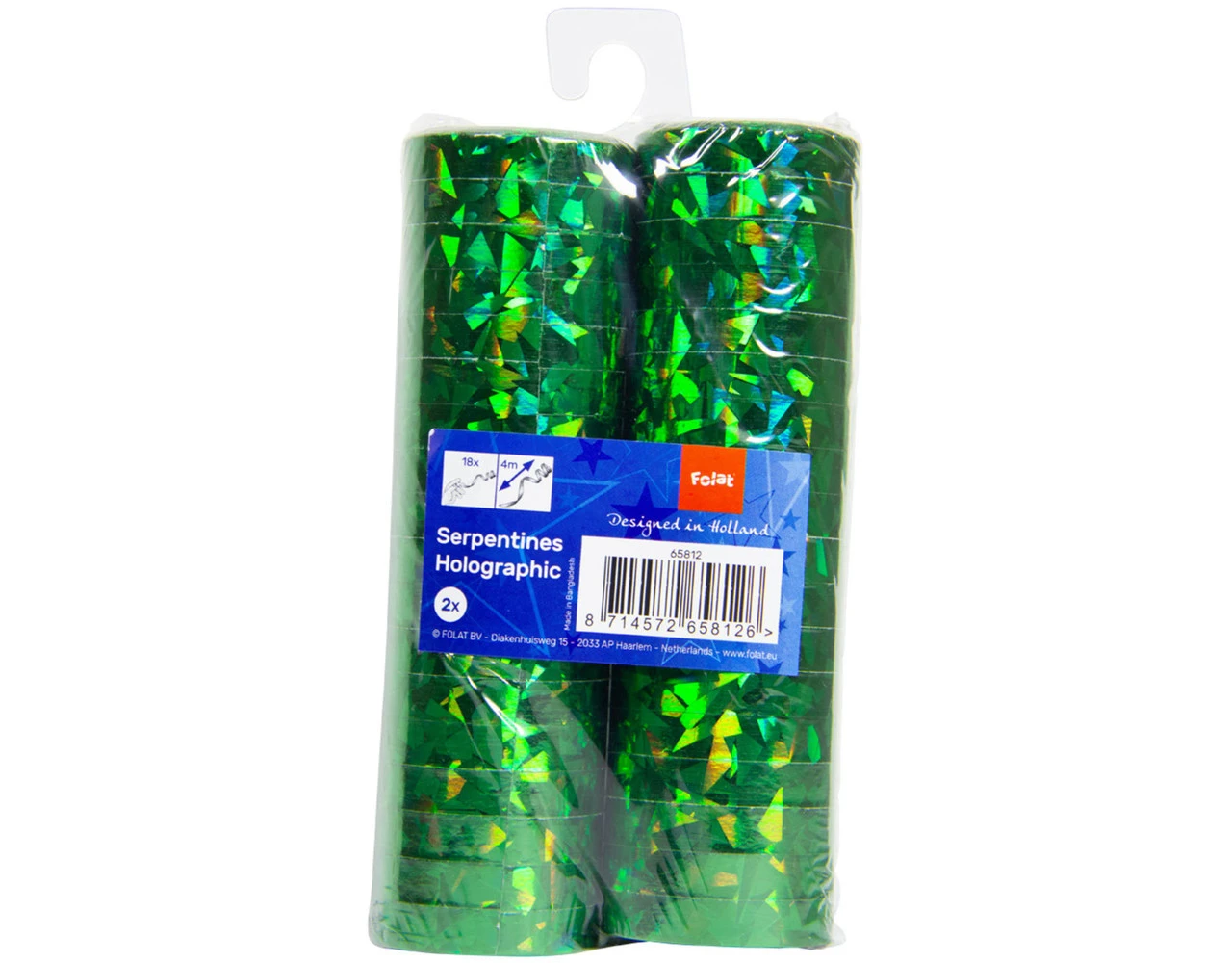 Groene Holografische Serpentines 4m – 2 stuks. In een verpakking zitten 2 rollen serpentines van 4 meter. Bijvoorbeeld te gebruiken tijdens de volgende feestgelegenheid/feestgelegenheden: verjaardag, kinderfeestje. De serpentines hebben een totale lengte van 4 meter. Het artikel is gemaakt van folie.