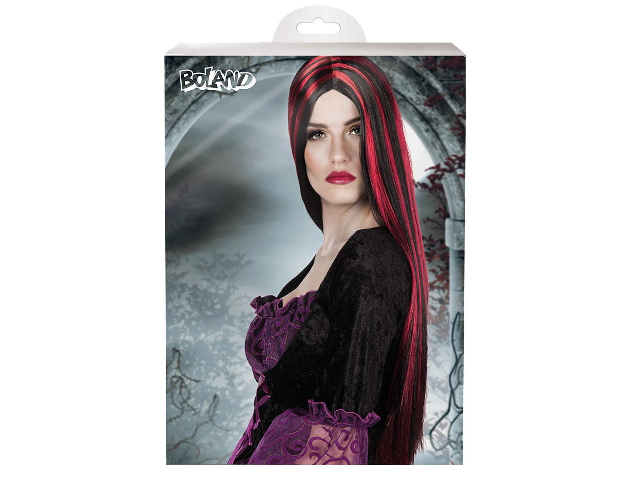 Verpakkingsinhoud: Pruik Heks Iona zwart/rode strepen