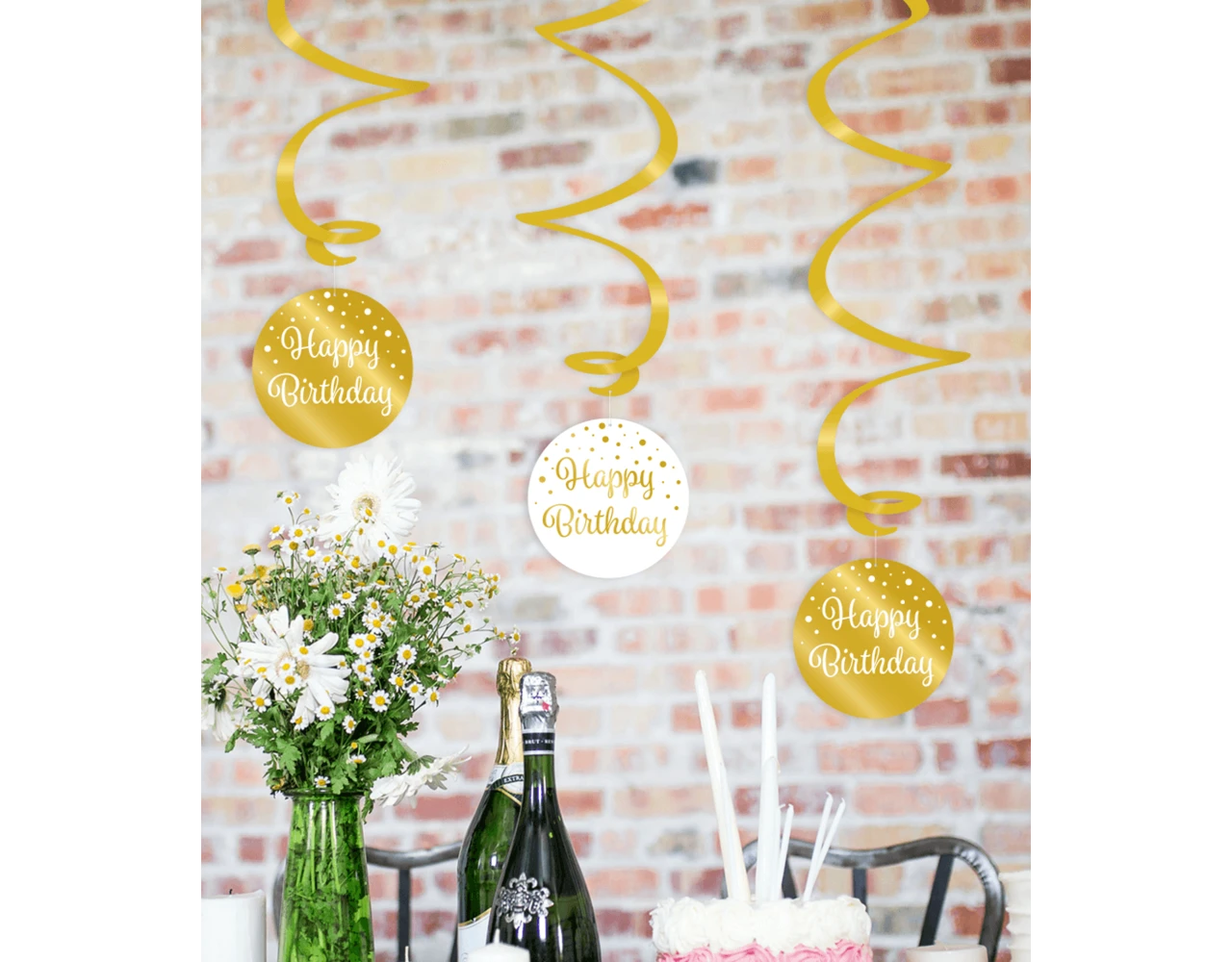 Verpakkingsinhoud: Swirl decoraties goud / wit – 16