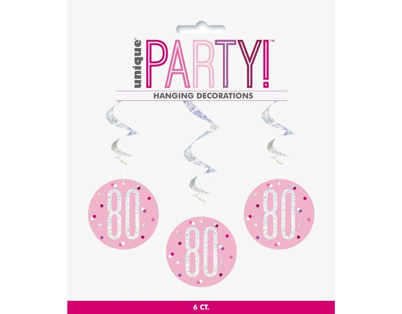 Verpakkingsinhoud: Hangdecoratie 80 Jaar Roze 81cm 6st