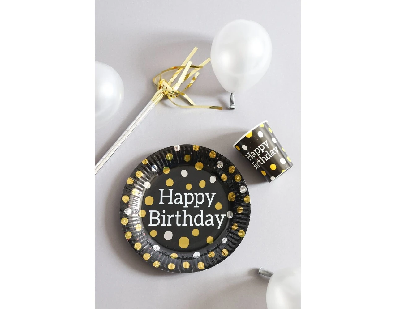 Bekers Glossy Black ‘Happy Birthday’ 250ml – 8 stuks. Inhoud: 8 bekers. Kleur: Zwart. Bijvoorbeeld te gebruiken tijdens de volgende feestgelegenheid/feestgelegenheden: Verjaardag, Kinderfeestje en Tienerfeestje. Een beker heeft een inhoud van 250 ml. Het artikel is gemaakt van papier.
