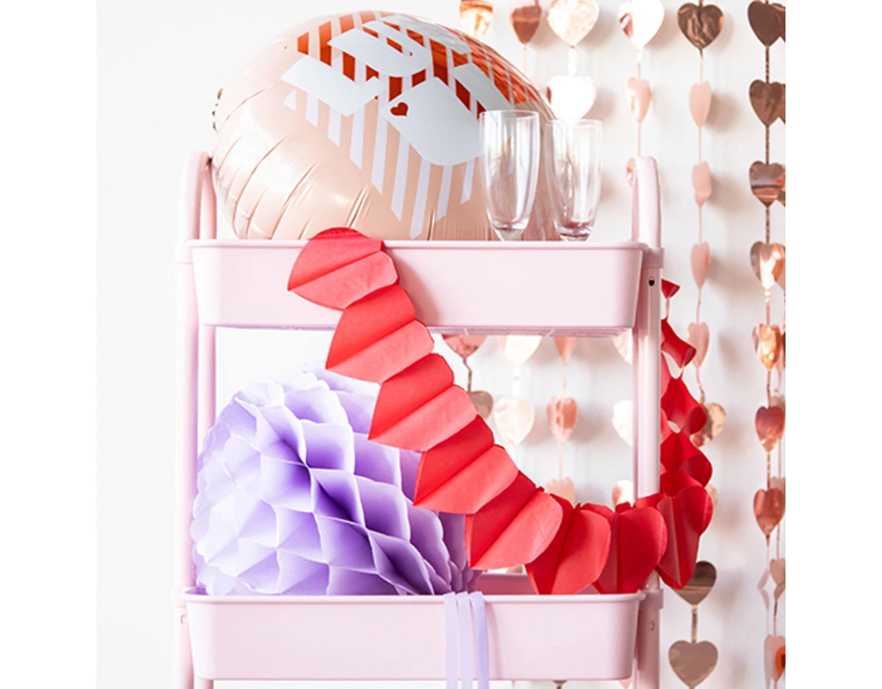 Slinger Hartjes Rood. Inhoud: 1 slinger. Kleur: Rood. Bijvoorbeeld te gebruiken tijdens de volgende feestgelegenheid/feestgelegenheden: Valentijnsdag, Bruiloft. Deze vlaggenlijn is 6 meter lang. Het artikel is gemaakt van papier.