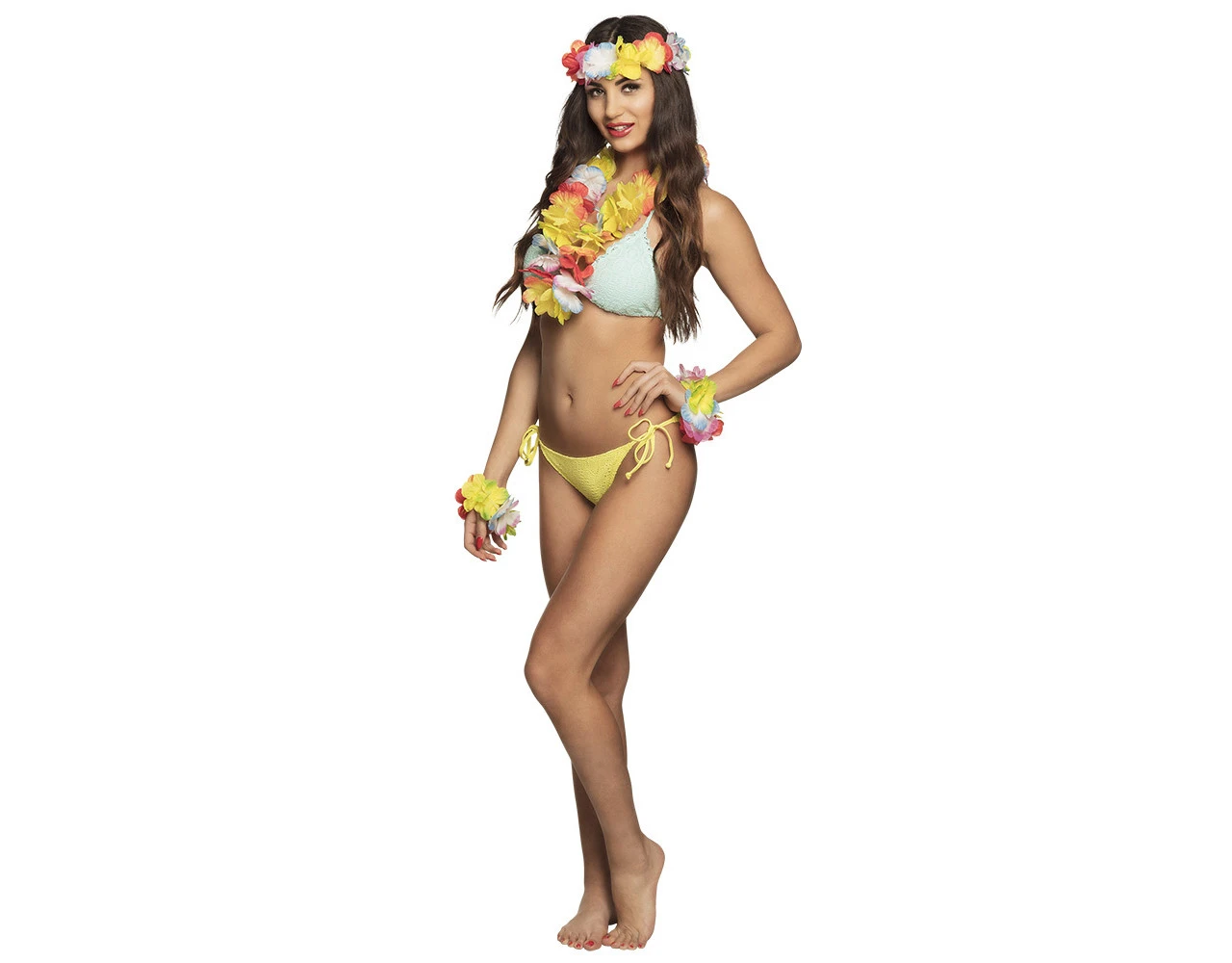 Inhoud: 1 hawaii krans, 2 armbanden en 1 hoofdband
