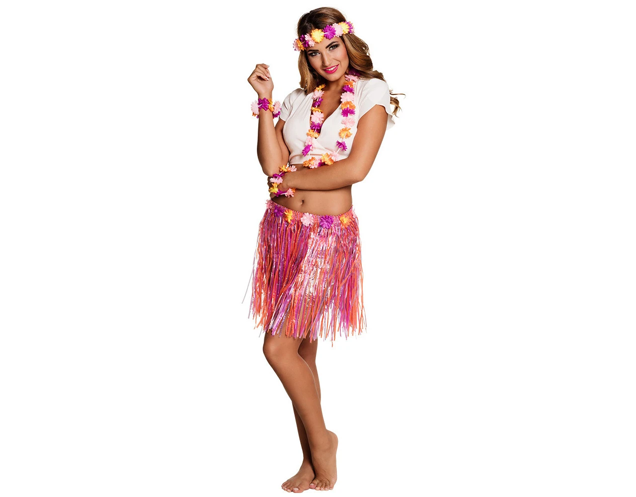 Inhoud: 1 hawaii rok, 1 hawaii krans, 2 armbanden en 1 hoofdband