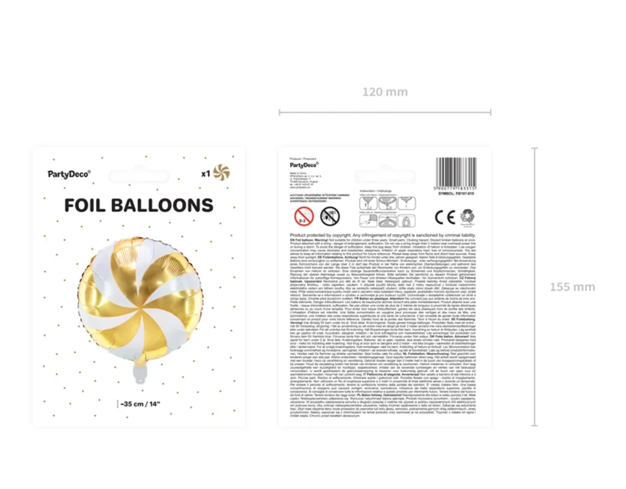 Matte folieballon Candy in witte kleur met gouden satijnopdruk, diameter voor opblazen ca. 45 cm (18”), diameter na opblazen ca. 35 cm (14”). Opblazen met helium en lucht. Opblazen met helium en lucht.