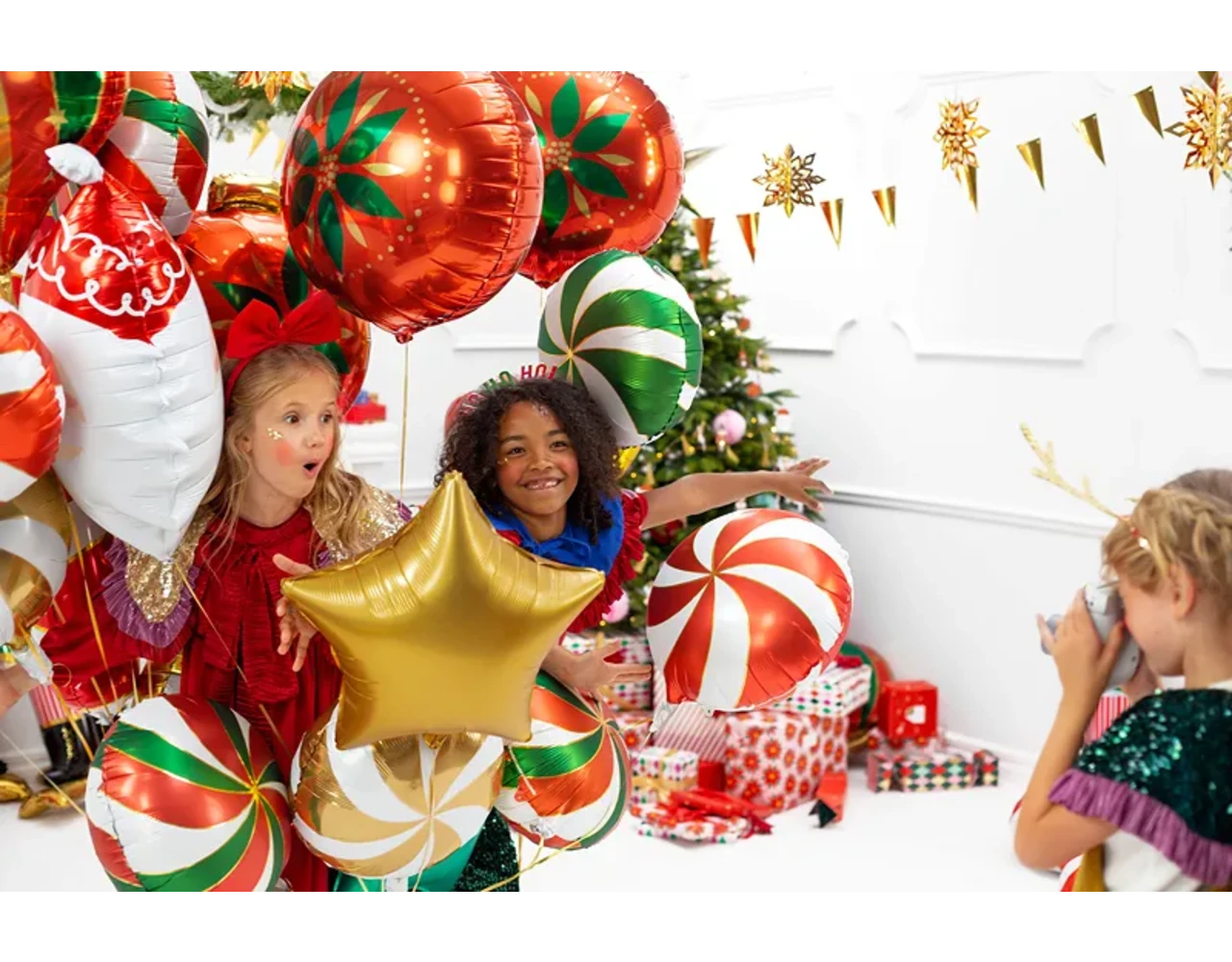 Matte folieballon Candy in witte kleur met rode en gouden satijnopdruk, diameter voor opblazen ca. 45 cm (18”), diameter na opblazen ca. 35 cm (14”). Opblazen met helium en lucht. Opblazen met helium en lucht.