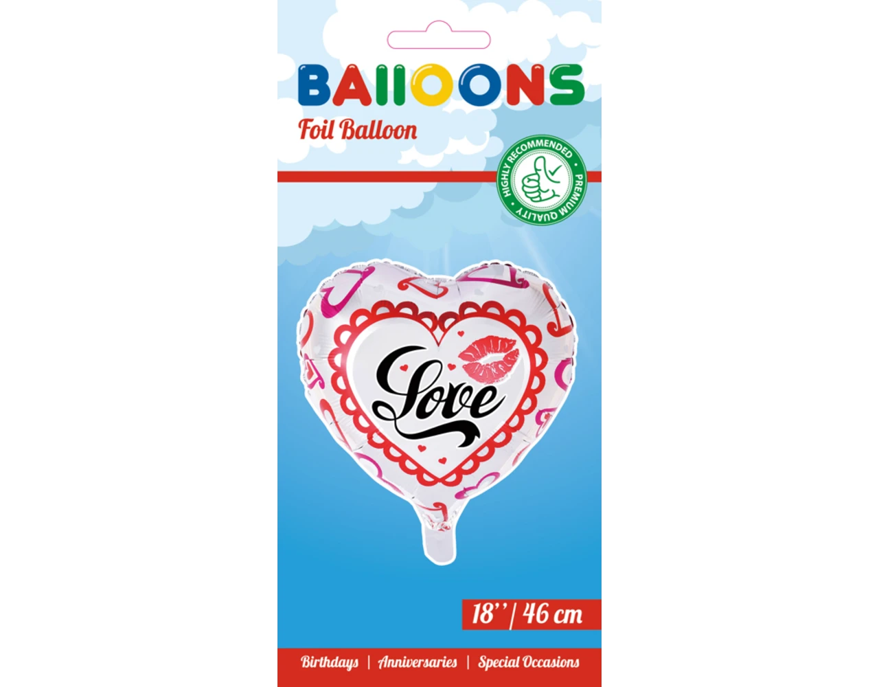 Verpakkingsinhoud: Helium Ballon Hart Love Kiss 45cm leeg