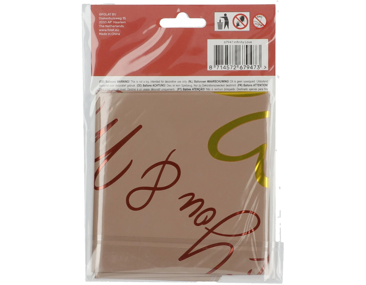 Folieballon Infinity Love – 45 cm. Inhoud: 1 folieballon. Kleur: Roze. Bijvoorbeeld te gebruiken tijdens de volgende feestgelegenheid/feestgelegenheden: Valentijnsdag en Bruiloft. Deze folieballon is 18 inch/45 cm. Het artikel is gemaakt van folie.