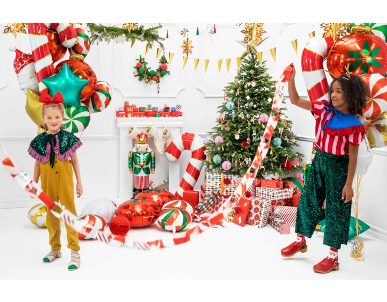 Matte staande folie ballon Notenkraker met kleurrijke en gouden satijn print, maat ca. ok. 34 x 85 cm (13,5 x 33,5 ”).