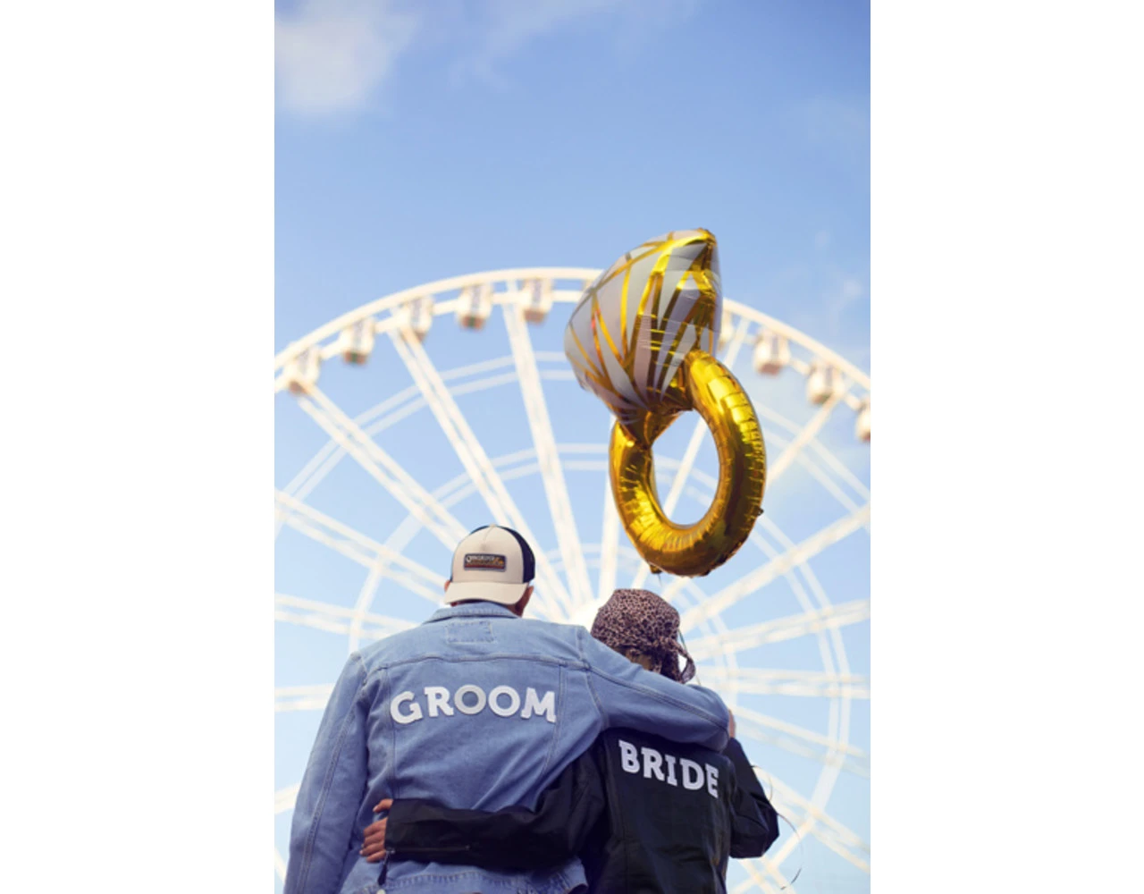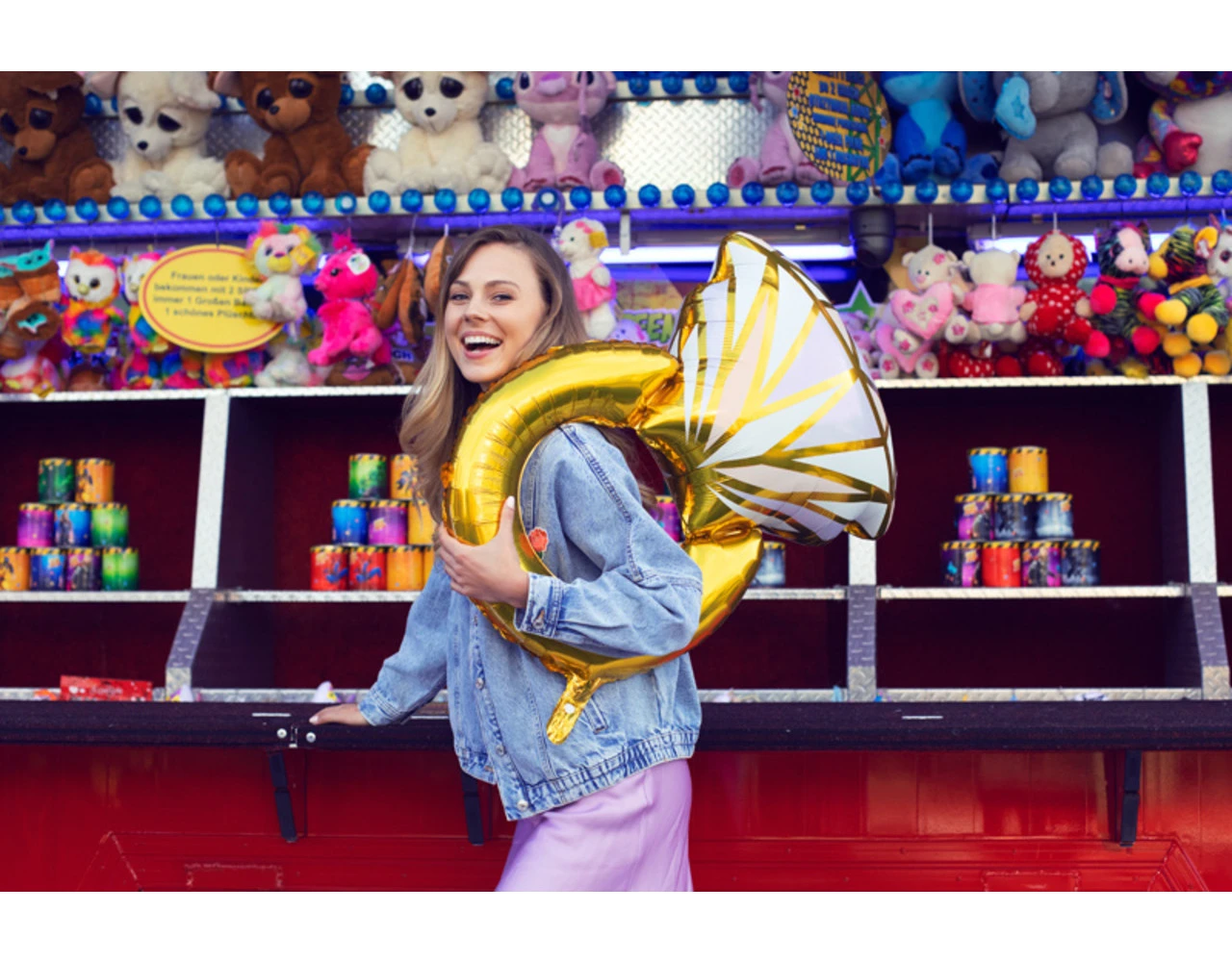 Glanzende folieballon in de vorm van een ring, mix van kleuren, afmeting voor opblazen ca. 60 x 95 cm, afmeting na opblazen ca. 56 x 75 cm. Opblazen met helium en lucht.