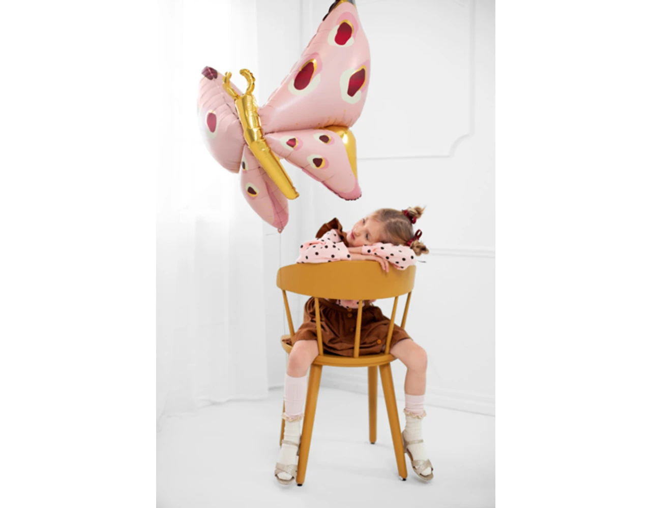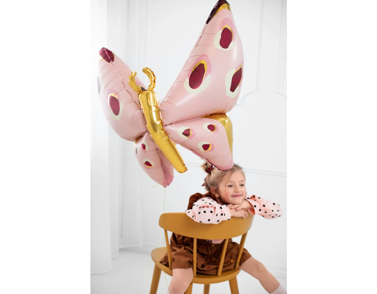Folieballon Vlinder, mix van kleuren, afmeting voor opblazen ca. 120 x 87 cm (47” x 34”), afmeting na opblazen ca. 110 x 67 cm (43” x 30”). Opblazen met lucht en helium.