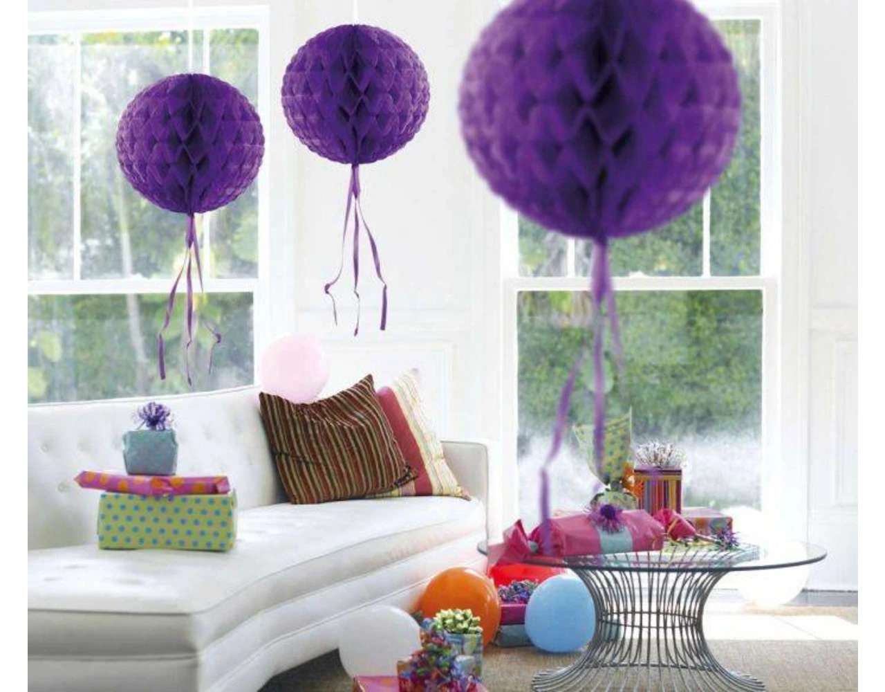 Honeycomb Bol Paars – 30 cm. Inhoud: 1 Honeycomb. Kleur: Paars. Bijvoorbeeld te gebruiken tijdens de volgende feestgelegenheid/feestgelegenheden: Themafeest, Verjaardag, Kinderfeestje. Deze decoratie is 30 cm. Een honeycomb is gemaakt van papier.
