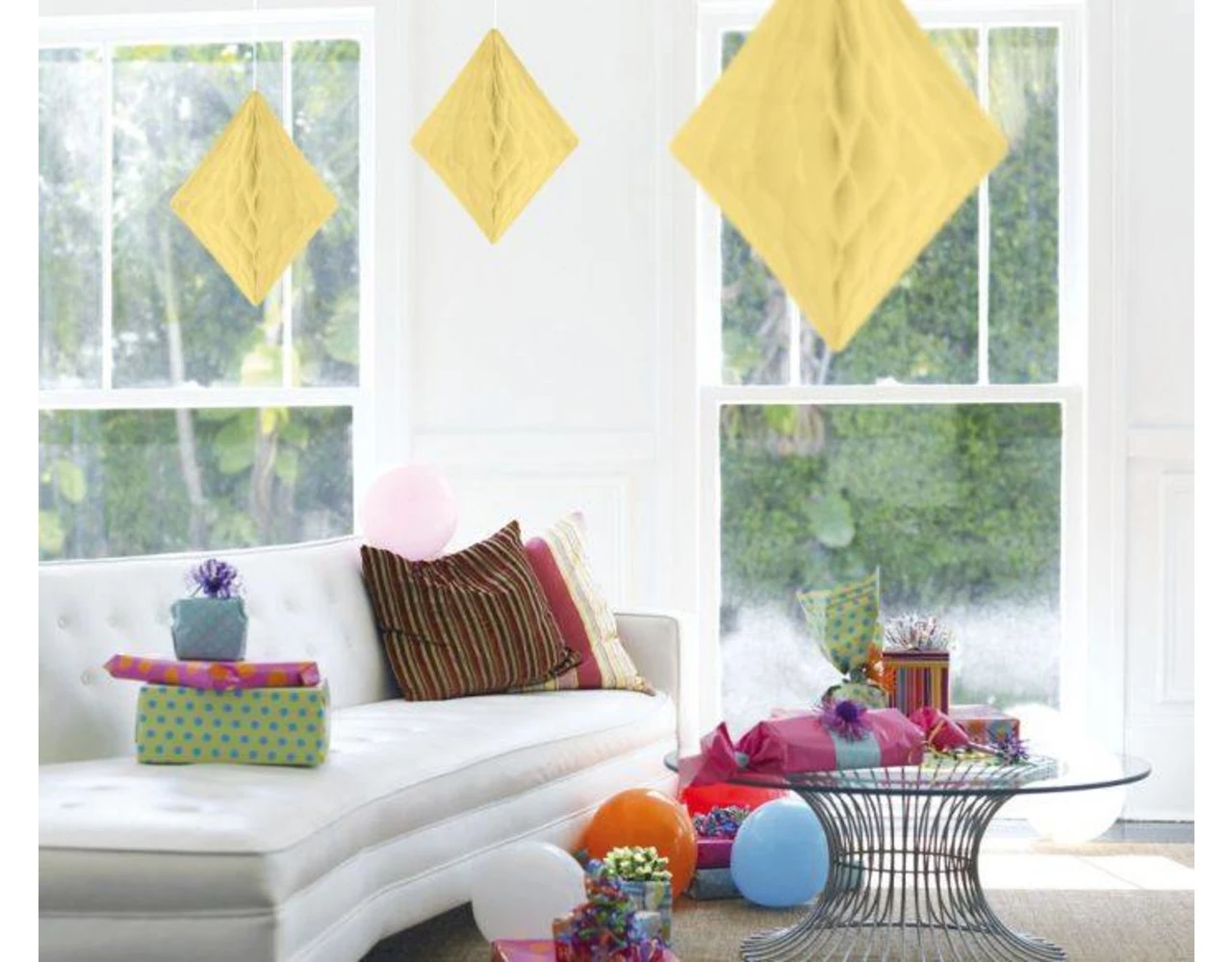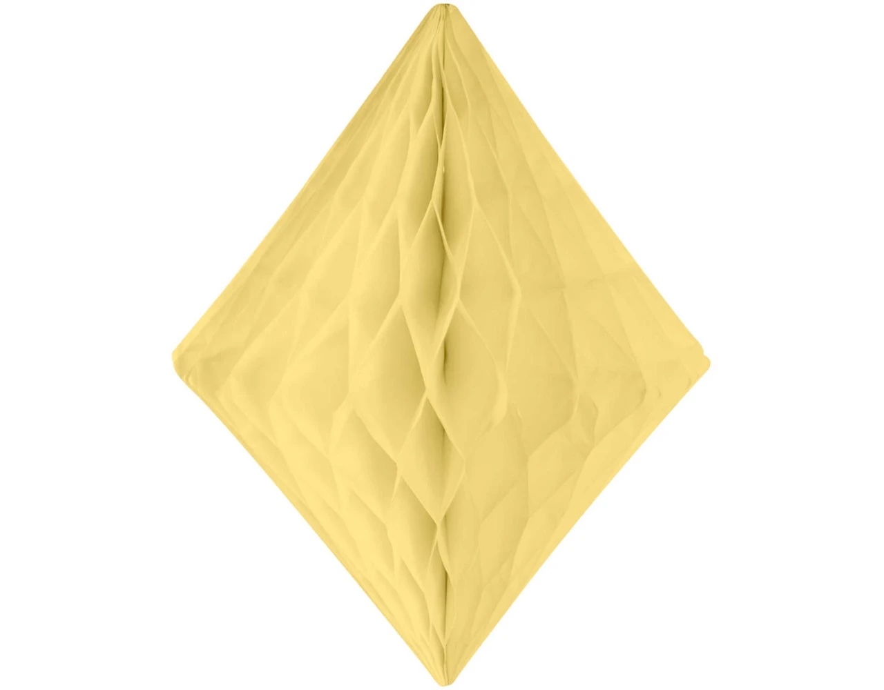 Honeycomb Diamant Ivoor Wit – 30cm. Inhoud: 1 Honeycomb. Kleur: Wit. Bijvoorbeeld te gebruiken tijdens de volgende feestgelegenheid/feestgelegenheden: Themafeest, Verjaardag, Kinderfeestje. Deze decoratie is 30 cm. Een honeycomb is gemaakt van papier.