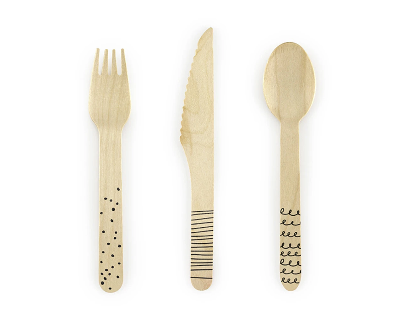 Verpakkingsinhoud: Houten Bestek Zwart 16cm 18 delig