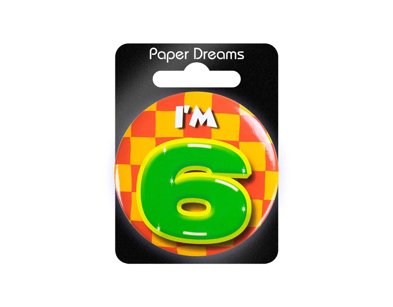 Verpakkingsinhoud: I’m 6 Button 6 Jaar 5,5cm