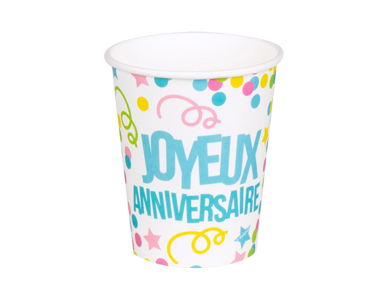 Verpakkingsinhoud: Joyeux Anniversaire Bekers 250ml 6st