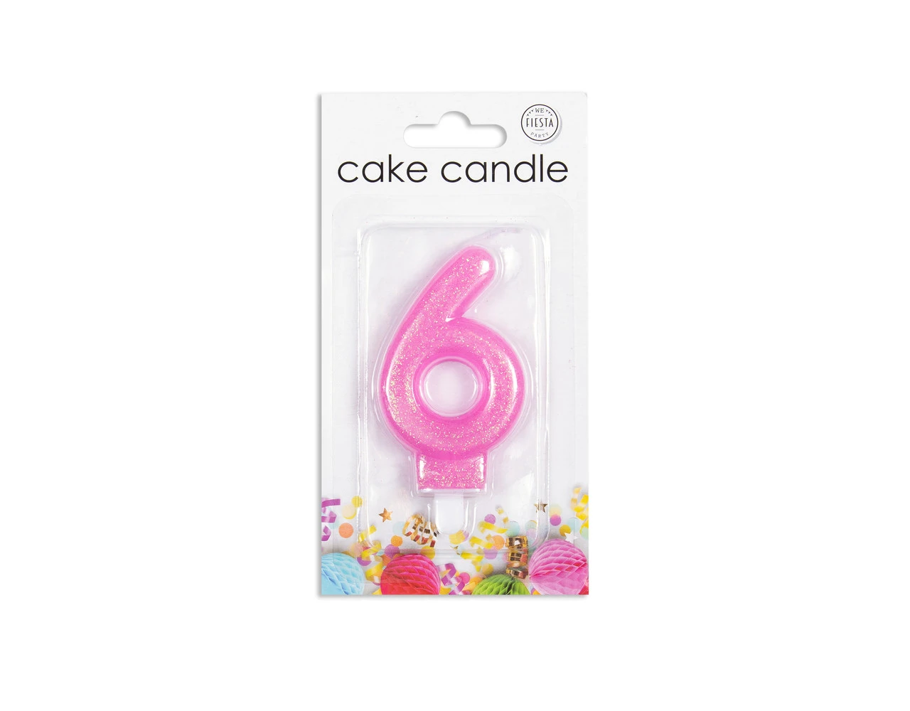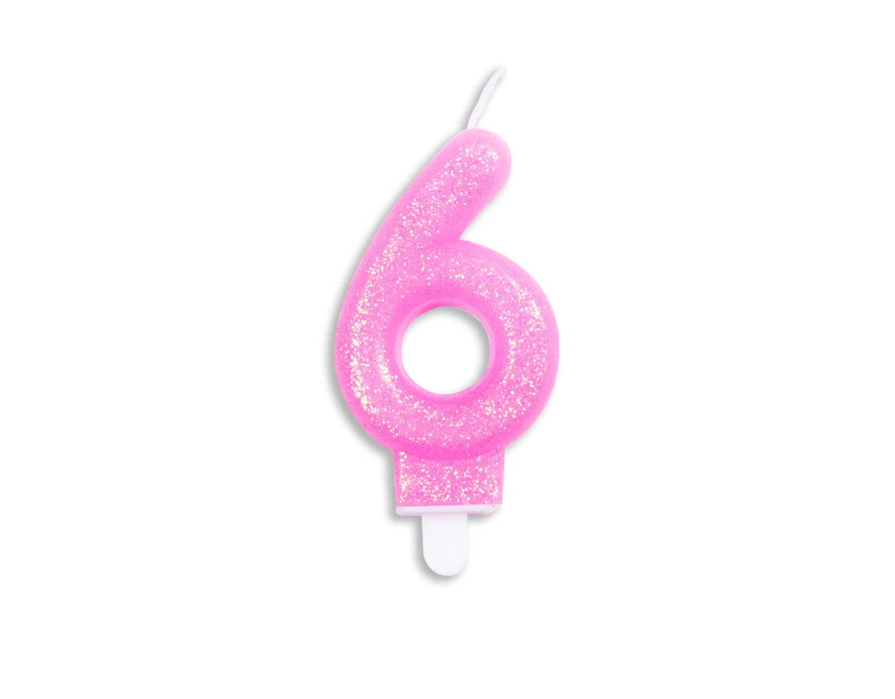 Verpakkingsinhoud: Kaars 6 Jaar Roze Glitter 7cm