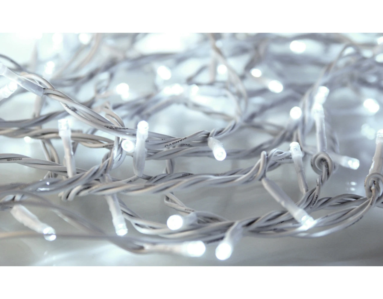 LED-lampjes, wit, de string 10 meter lang, 100 lampjes. De lampjes zijn koud wit. Bevat geen UK stekker.