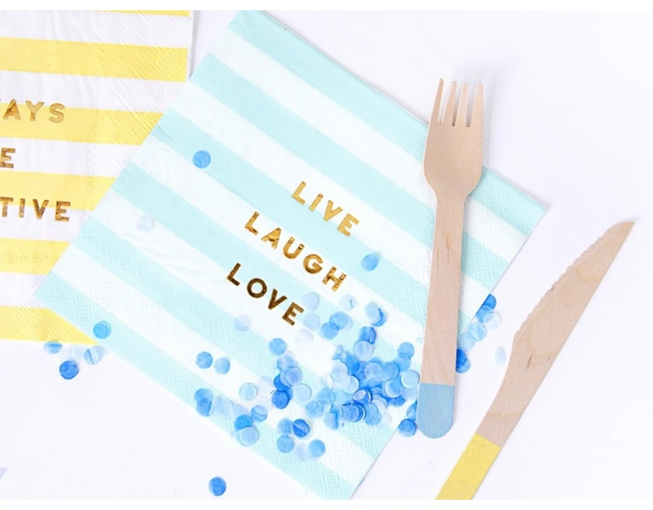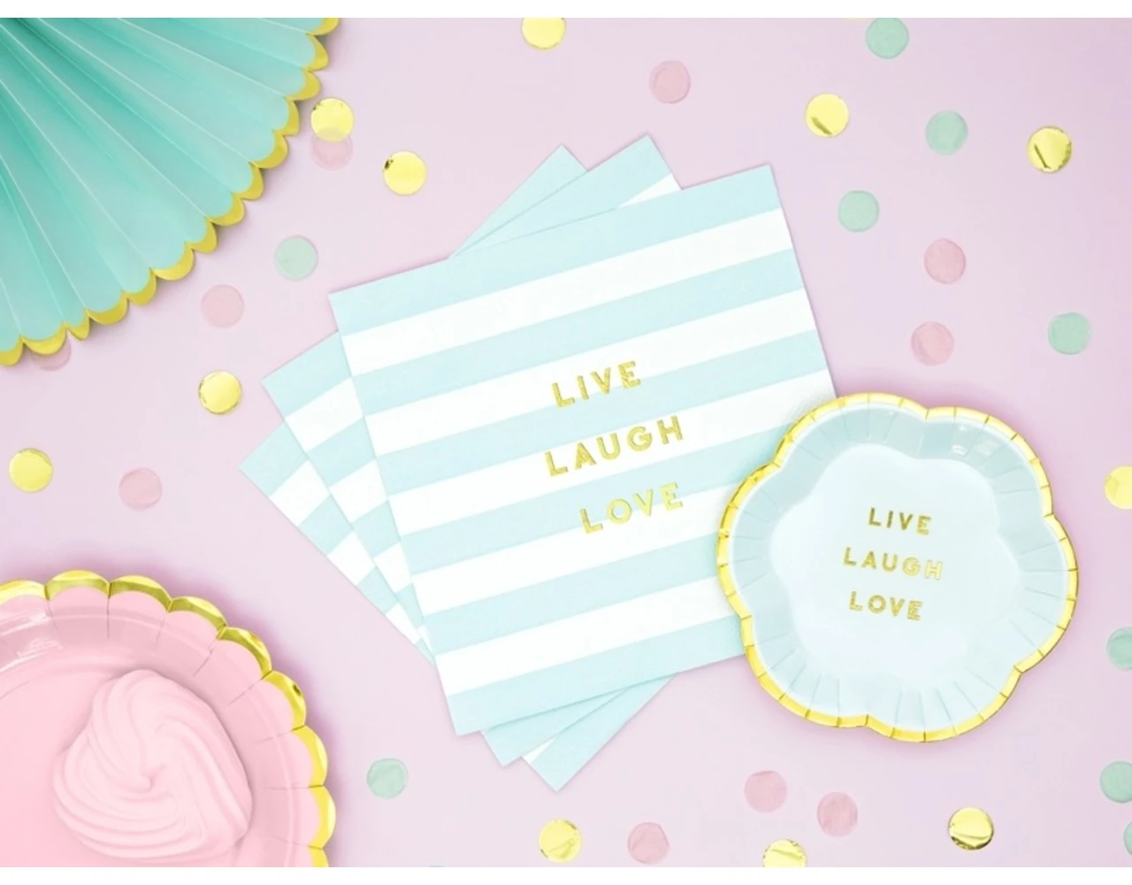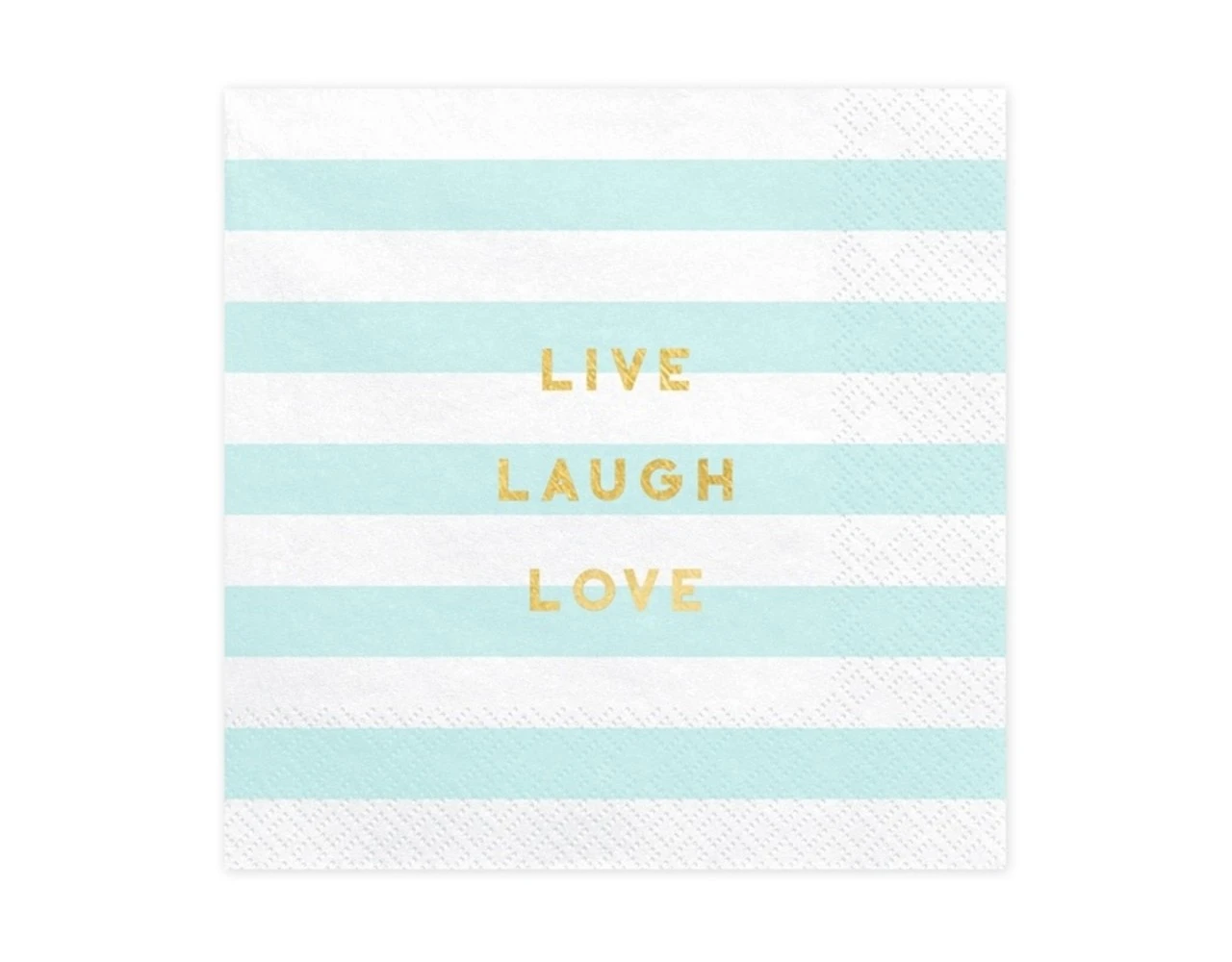 Verpakkingsinhoud: Lichtblauwe Servetten Live Laugh Love 33cm 20st