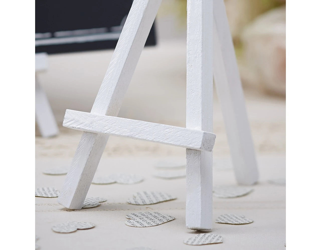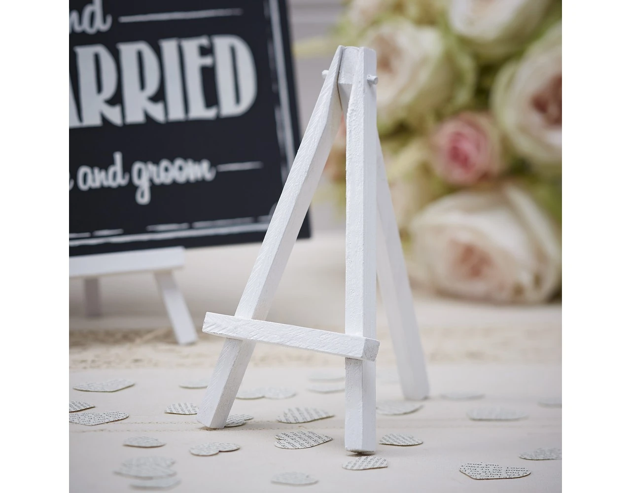 Deze mini houten ezelstandaards zijn klassiek in een wit geverfde afwerking. Gebruik bij elk feest, van een bruiloft tot een babyshower tot een verjaardagsfeestje.
