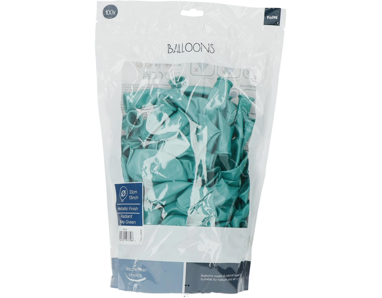 Ballonnen Radiant Minty Green Metallic 33cm – 100 stuks. Inhoud: 100 latex ballonnen. Kleur: Groen. Kleureffect: Metallic. Bijvoorbeeld te gebruiken tijdens de volgende feestgelegenheid/feestgelegenheden: Verjaardag, Kinderfeestje en Themafeest. Elke ballon is 13 inch/33 cm. Het artikel is gemaakt van latex.