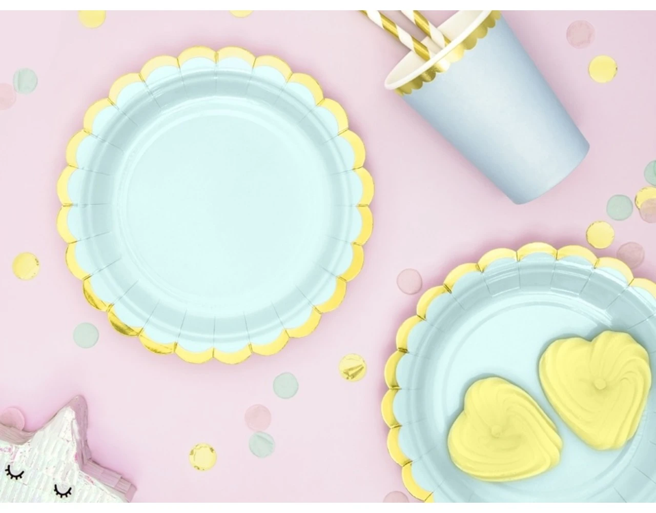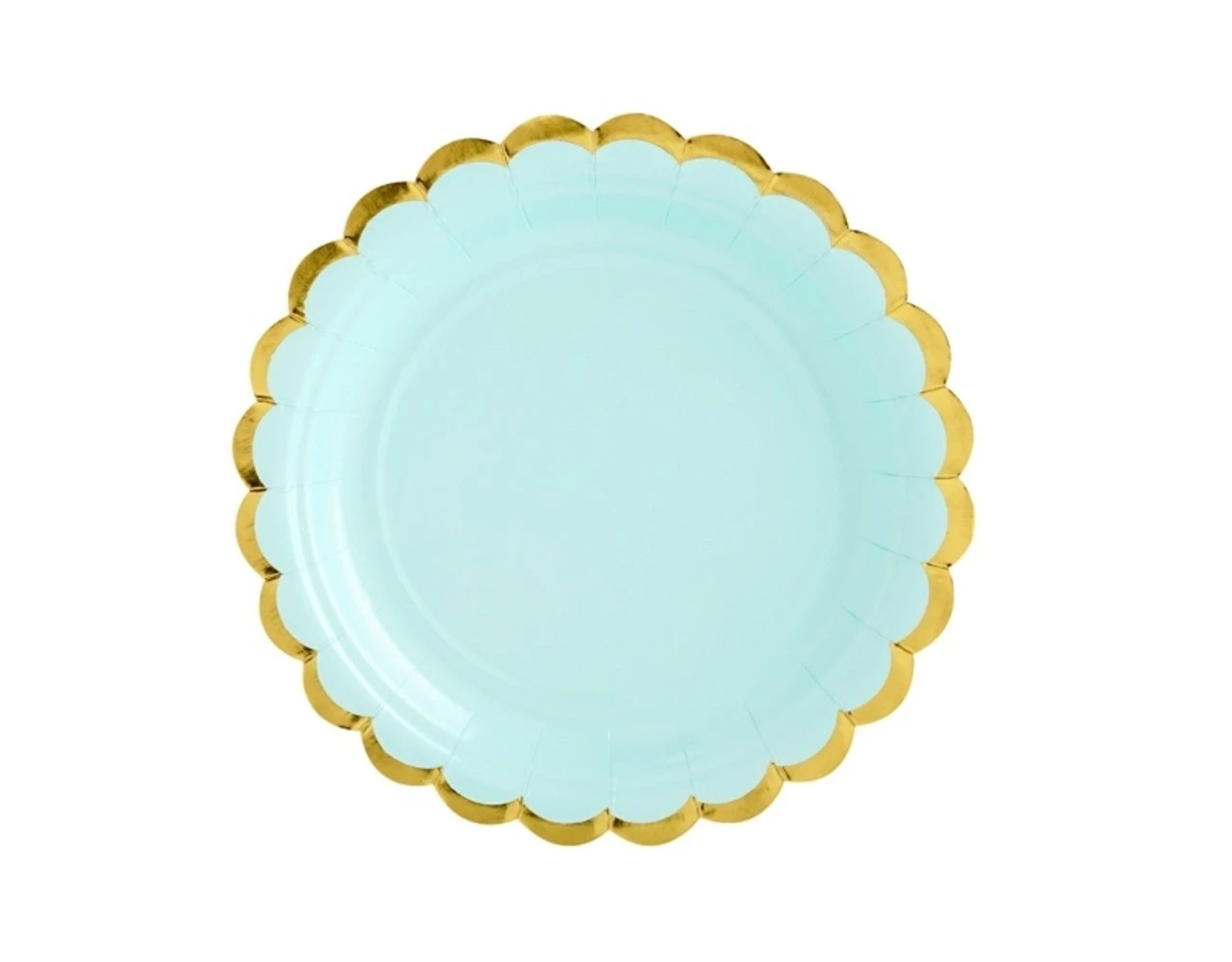Verpakkingsinhoud: Mintgroene Bordjes Karton Goud 18cm 6st