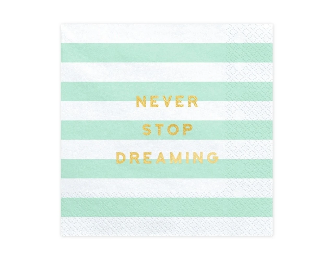 Verpakkingsinhoud: Mintgroene Servetten Never Stop Dreaming 33cm 20st