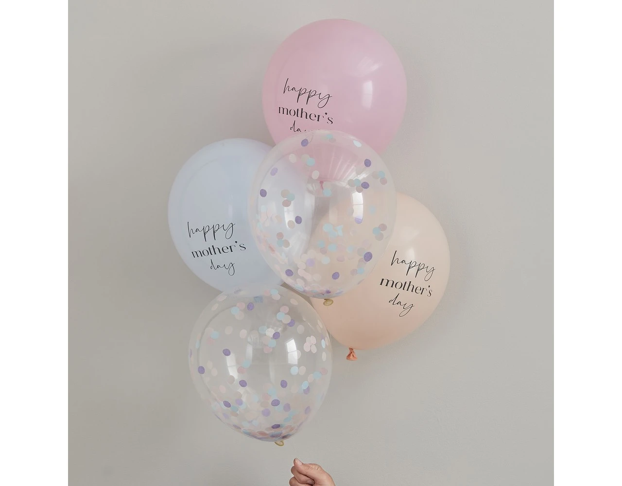 Zorg ervoor dat mama weet hoeveel je om deze Moederdag geeft door net dat stapje verder te gaan met deze doordachte balloncluster. Hang of blaas deze prachtige Moederdag-ballonnen op in je huis of locatie om mama mee te verrassen en haar extra speciaal te laten voelen.