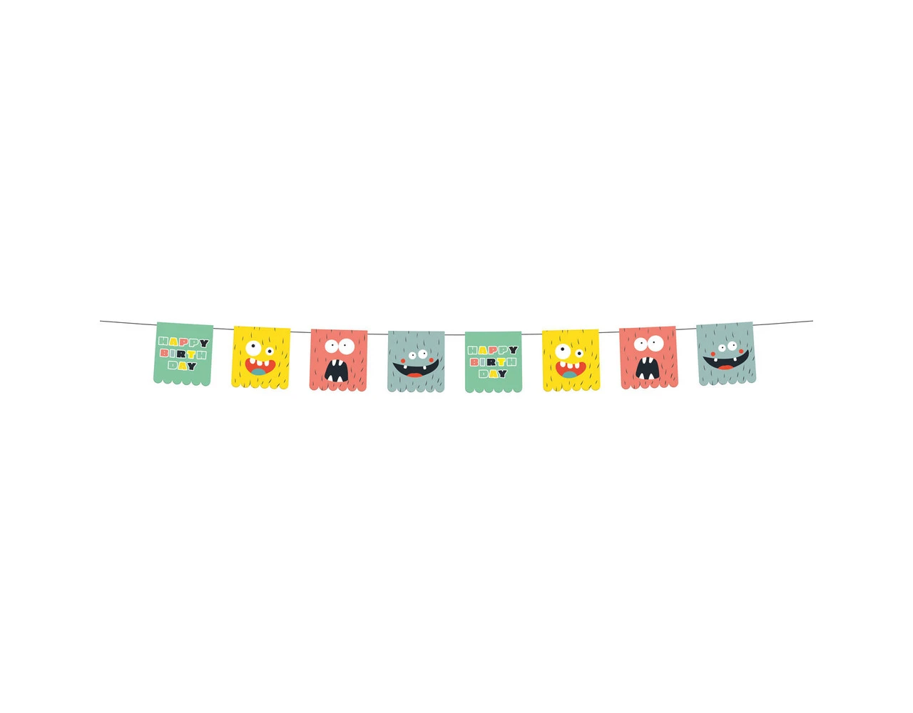 Vlaggenlijn Monster Bash – 6 meter. Inhoud: 1 vlaggenlijn. Kleur: Meerkleurig. Bijvoorbeeld te gebruiken tijdens de volgende feestgelegenheid/feestgelegenheden: Kinderfeestje. Deze slinger is 6 meter lang met 12 vlaggetjes van 18×21 cm. Het artikel is gemaakt van papier en is dubbelzijdig bedrukt.