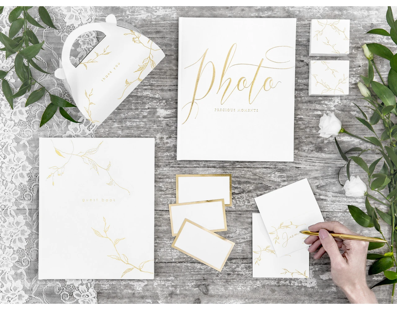 Inhoud: Plaats kaarten gemaakt van wit papier met gouden frame, afm. 9,5 x 5,5 cm. (1 PKT / 10 st.)