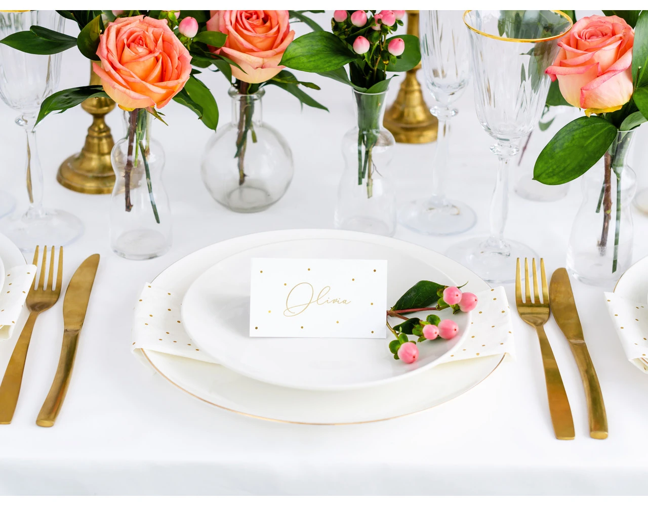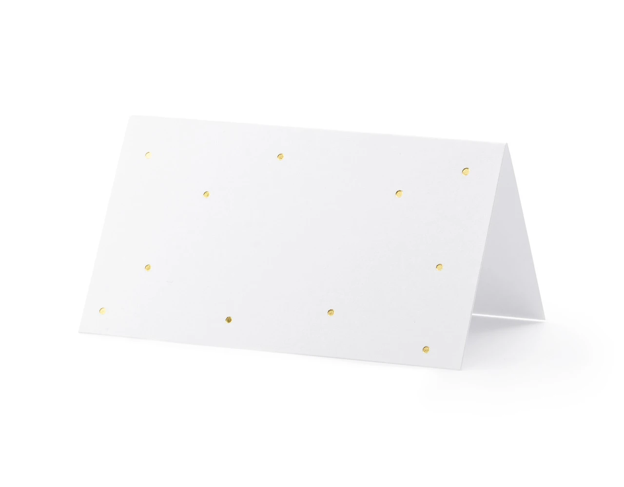 Inhoud: Plaats kaarten gemaakt van wit papier met goud metallic stippen patroon, grootte na het monteren van ca.. 9,5 x 5,5 cm. (1 PKT / 10 st.)