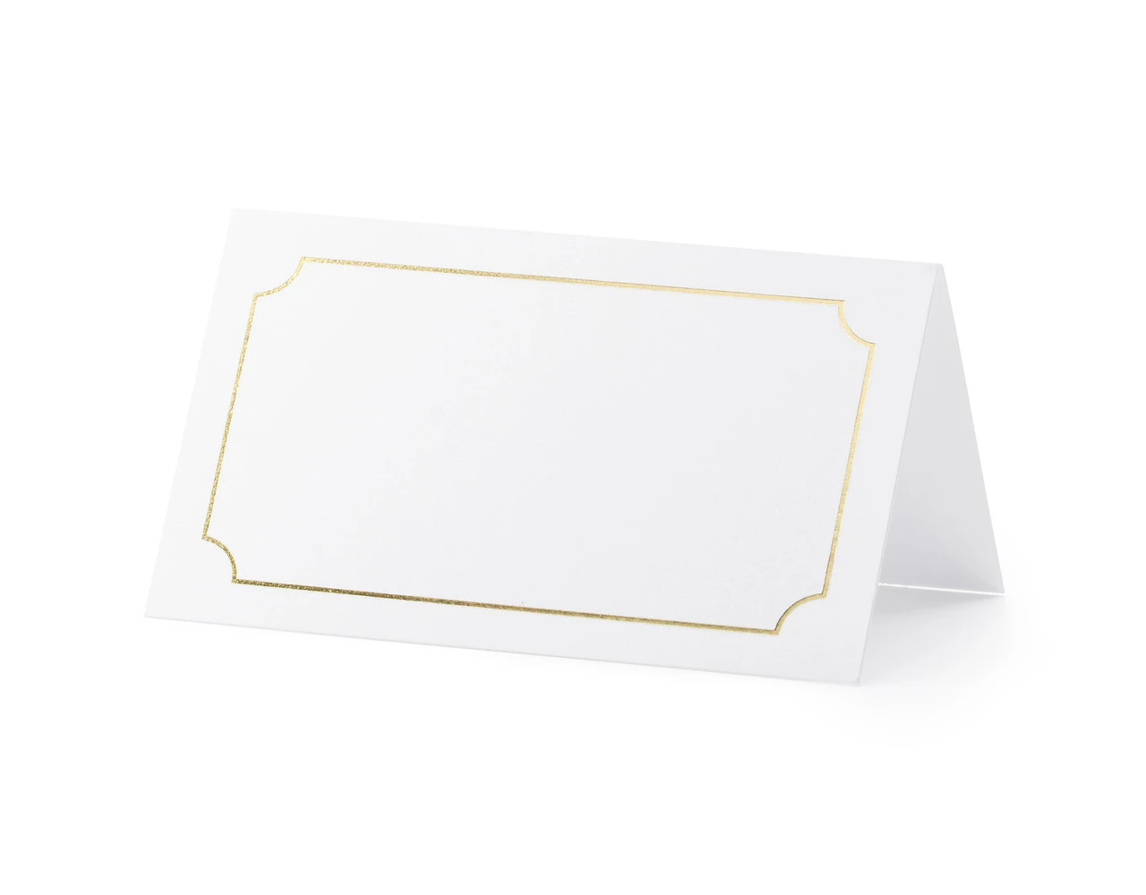 Inhoud: Plaats kaarten gemaakt van wit papier met goud metalen frame, de grootte na het monteren van ca.. 9,5 x 5,5 cm. (1 PKT / 10 st.)