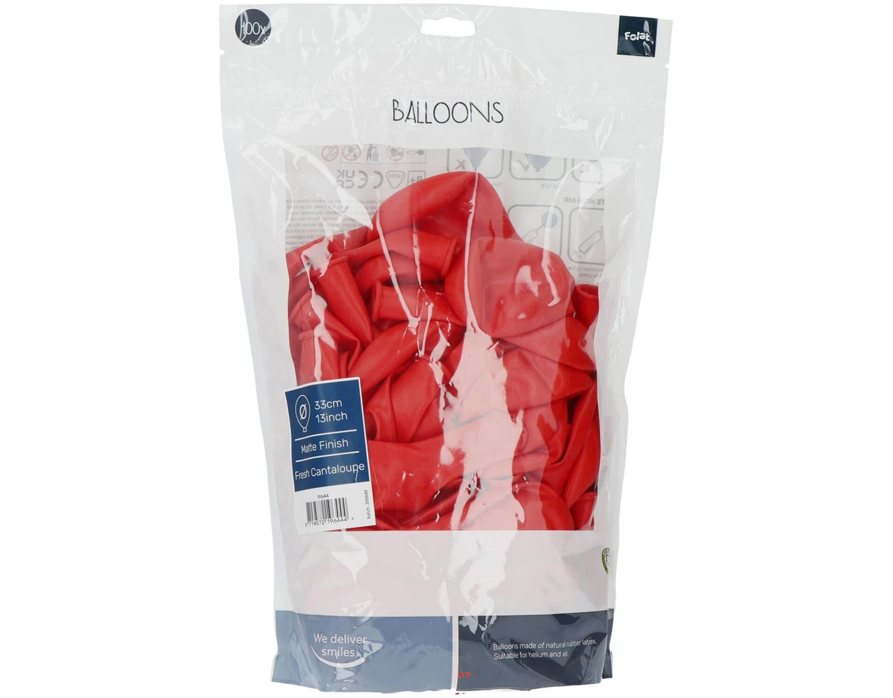 Ballonnen Fresh Cantaloupe Mat 33cm – 100 stuks. Inhoud: 100 latex ballonnen. Kleur: Oranje. Bijvoorbeeld te gebruiken tijdens de volgende feestgelegenheid/feestgelegenheden: Verjaardag, Kinderfeestje en Themafeest. Elke ballon is 13 inch/33 cm. Het artikel is gemaakt van latex.