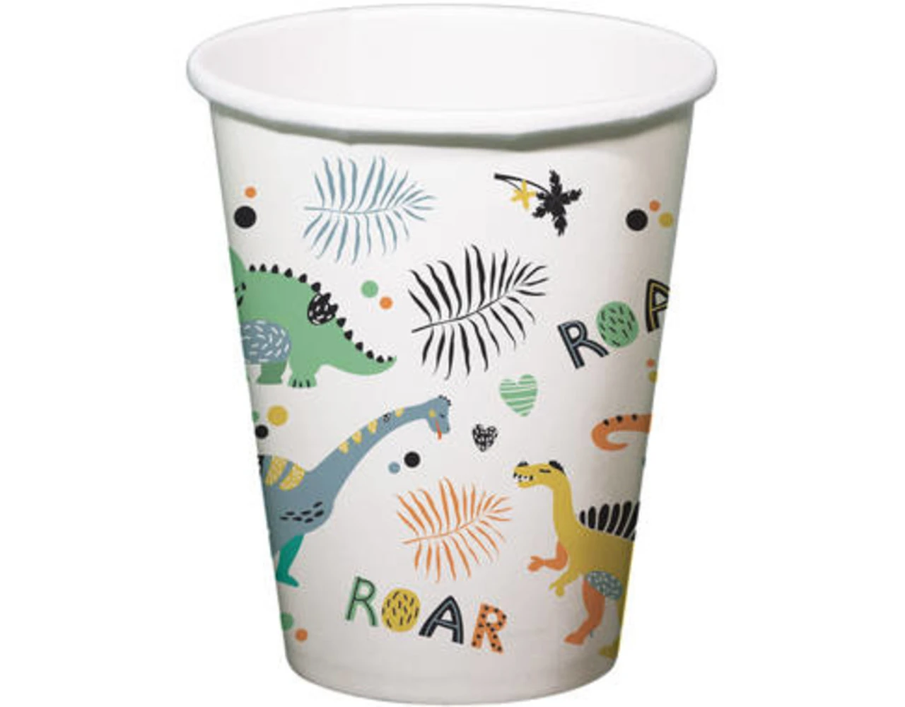 Bekers Dino Roars 250ml – 6 stuks. Inhoud: 6 bekers. Kleur: Meerkleurig. Bijvoorbeeld te gebruiken tijdens de volgende feestgelegenheid/feestgelegenheden: Kinderfeestje. Een beker heeft een inhoud van 250 ml. Het artikel is gemaakt van papier.