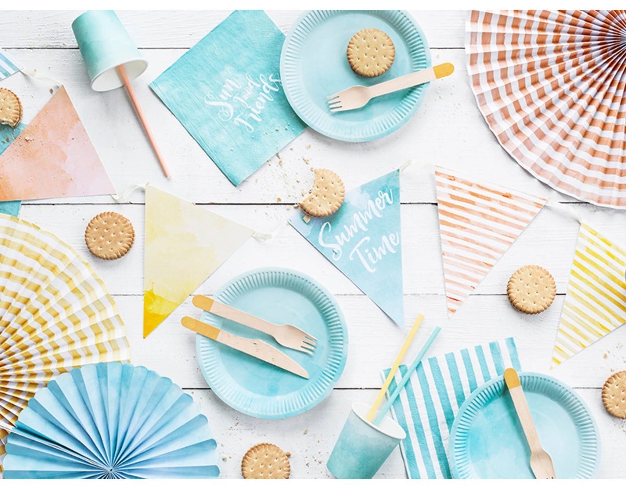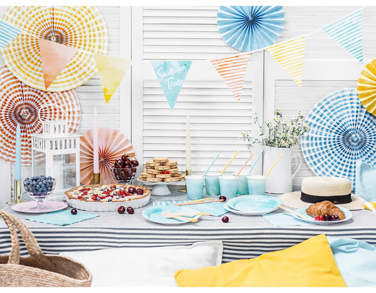 Verpakkingsinhoud: Papieren Waaiers Gekleurd Zomer Set 25-40cm 6 delig