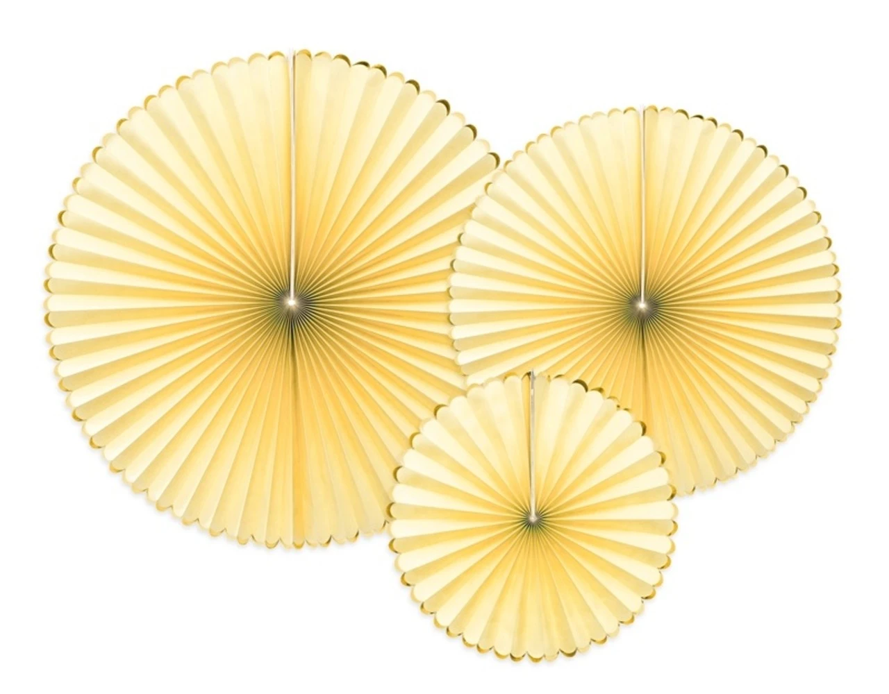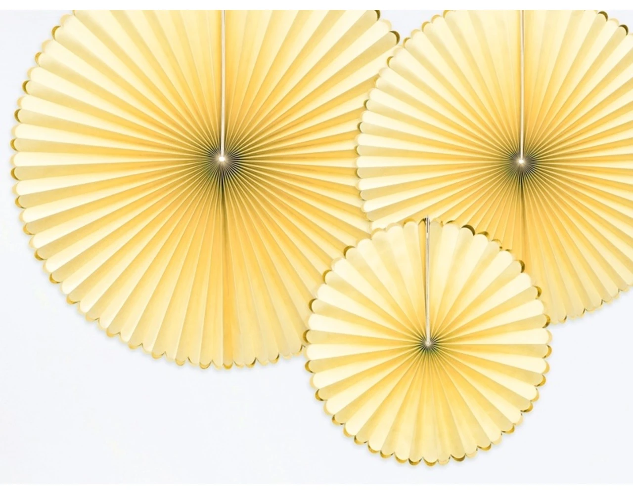 Verpakkingsinhoud: Papieren Waaiers Lichtgeel Goud Set 23-40cm 3 delig