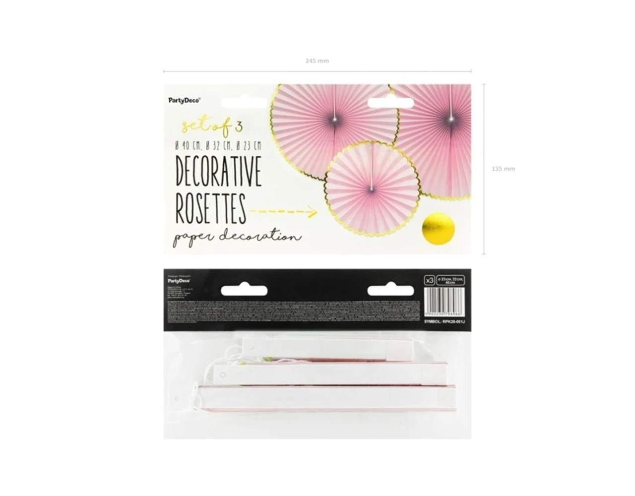 Verpakkingsinhoud: Papieren Waaiers Lichtroze Goud Set 23-40cm 3 delig