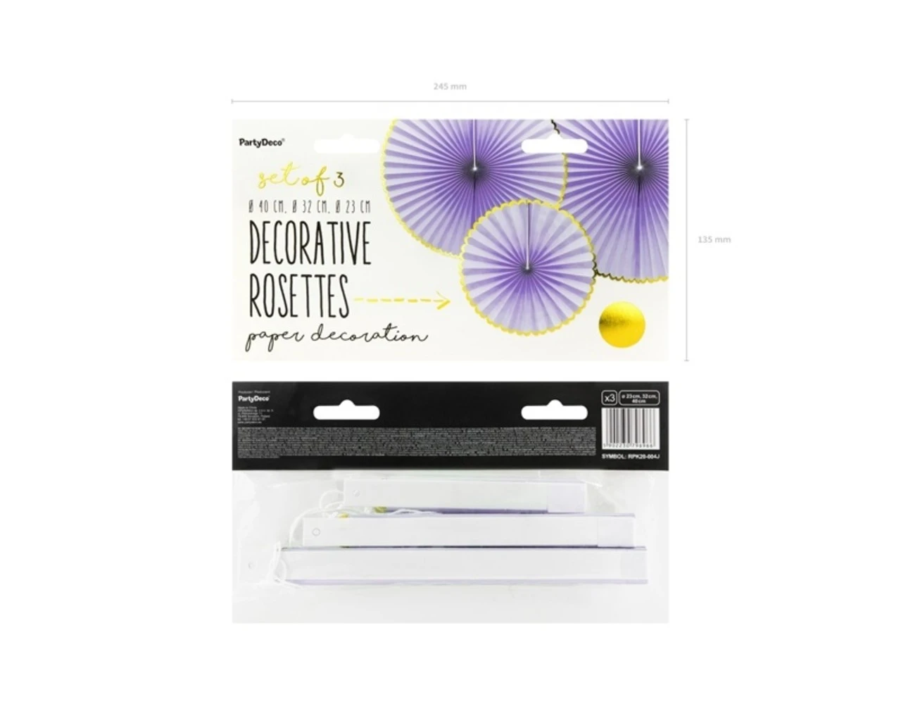 Verpakkingsinhoud: Papieren Waaiers Lila Goud Set 23-40cm 3 delig