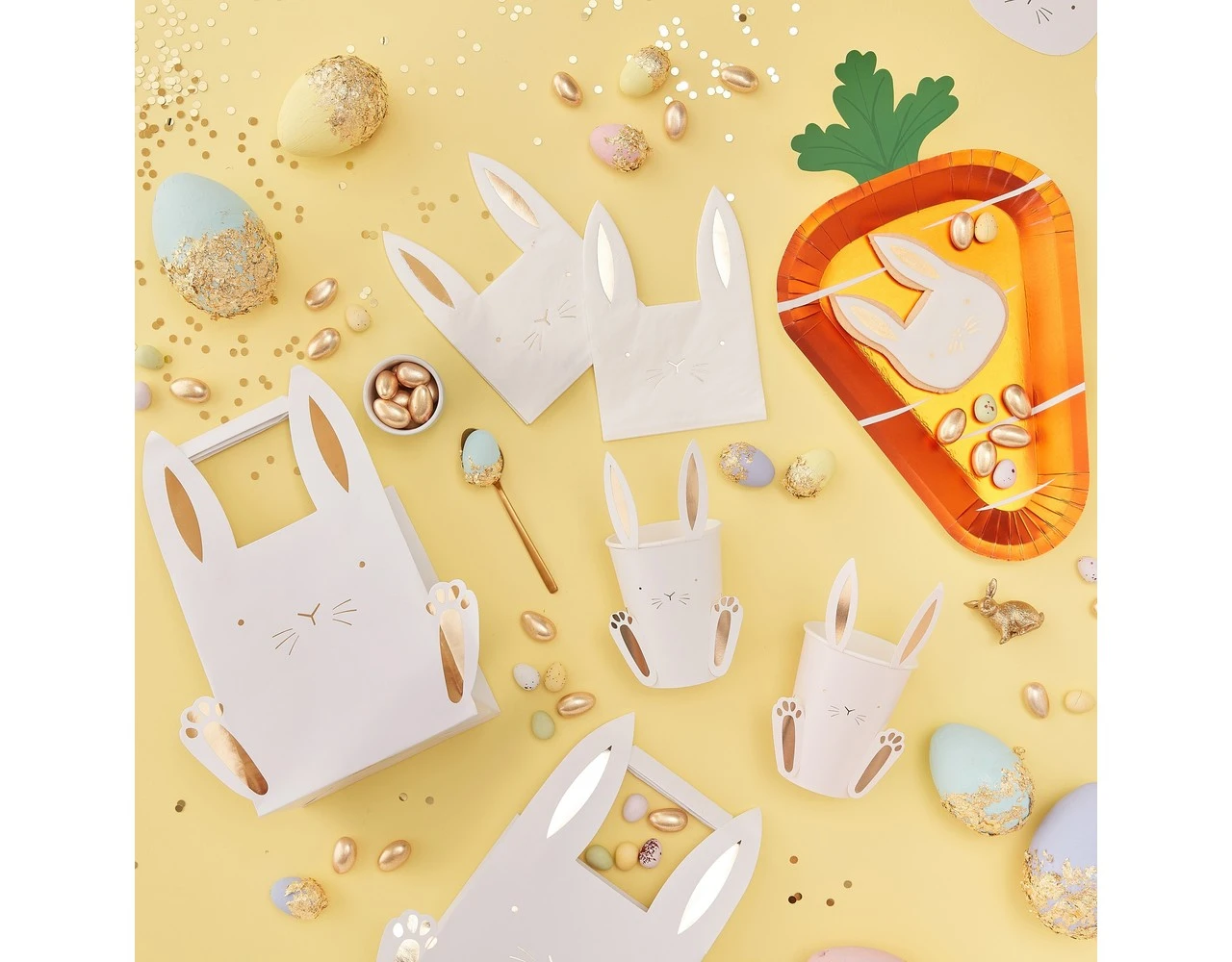 De schattige kopjes zijn een perfecte aanvulling op je paasfeestdecoraties en zien er super schattig uit met ons wortelvormige bord en konijnenservet. Bekers zijn in baby roze wit een en gele kleuren.