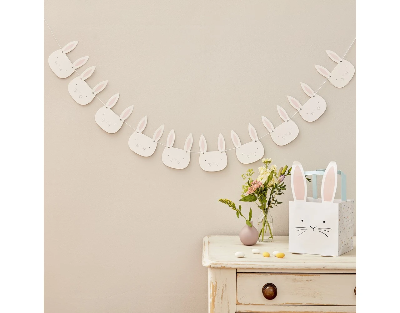 Deze schattige konijnenvlag kan eenvoudig aan muren, deuropeningen en meubels worden gehangen om de perfecte sfeer voor uw paasfeest te creëren en zal een gezinsvriendelijk display creëren om nooit te vergeten