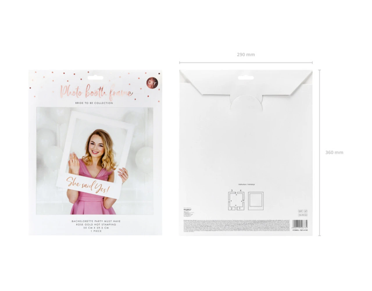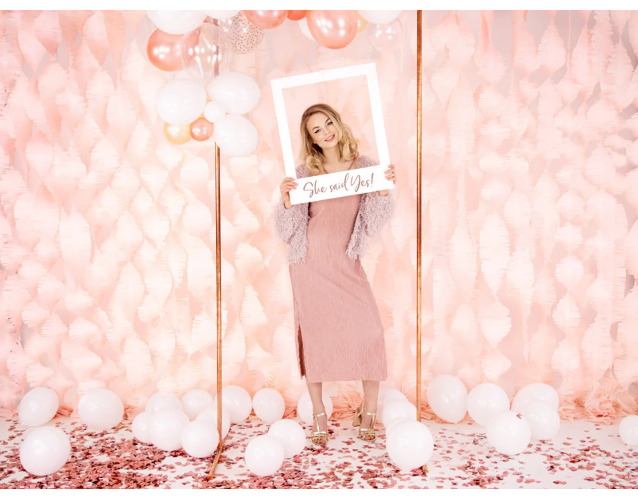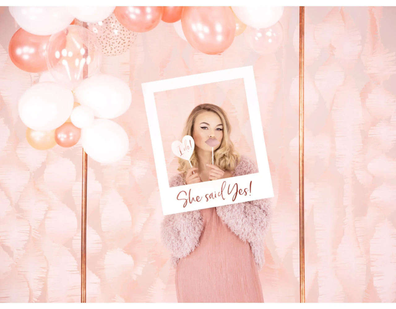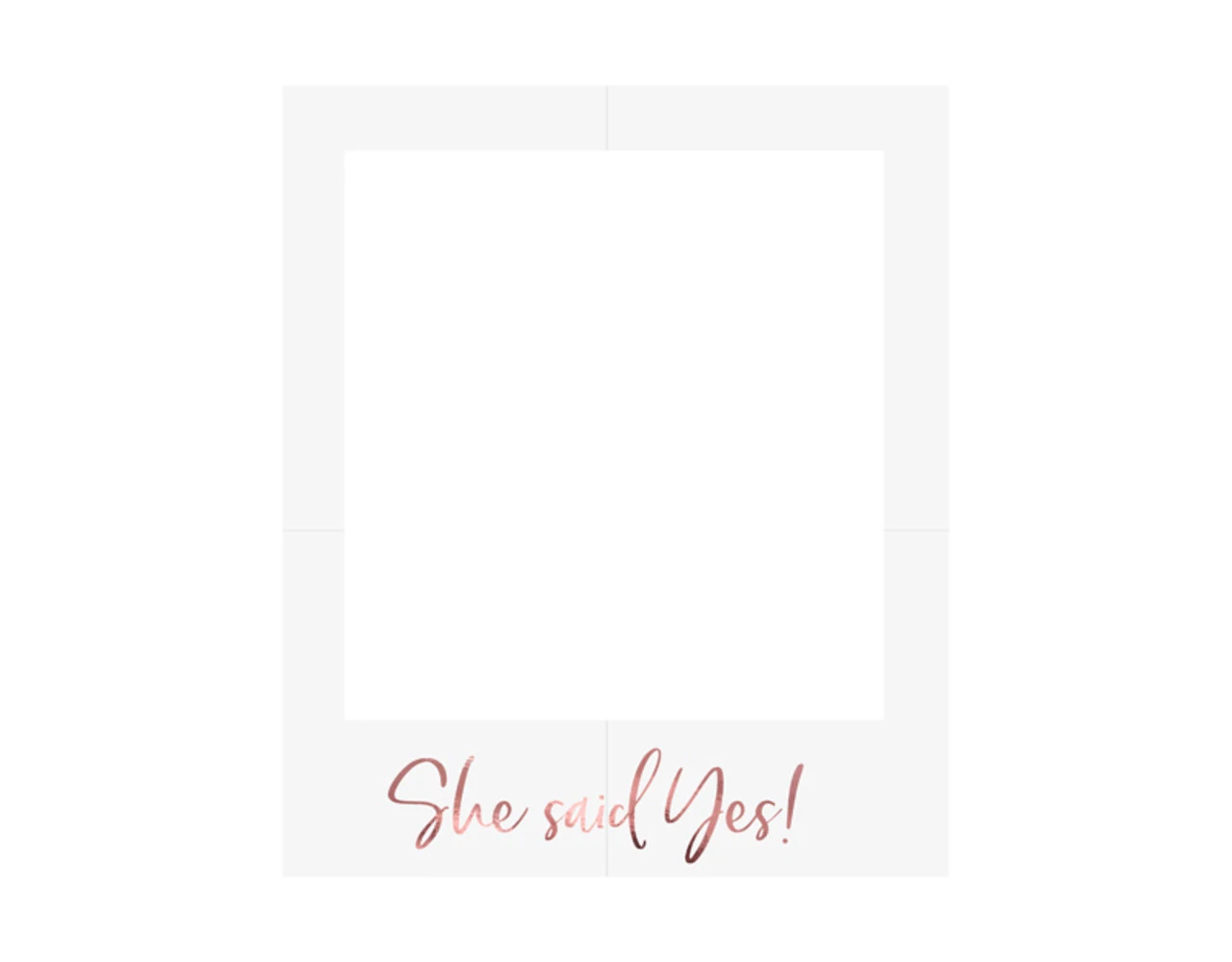 Selfie fotolijst in witte kleur met rosŽgoudkleurig teken She said yes, doe het zelf product, afmeting na montage ca. 50 x 59,5 cm.