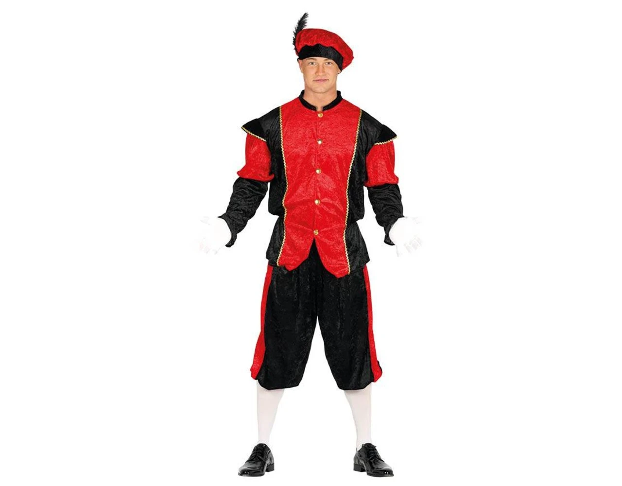 Inhoud: pieten broek, shirt en pet met veer