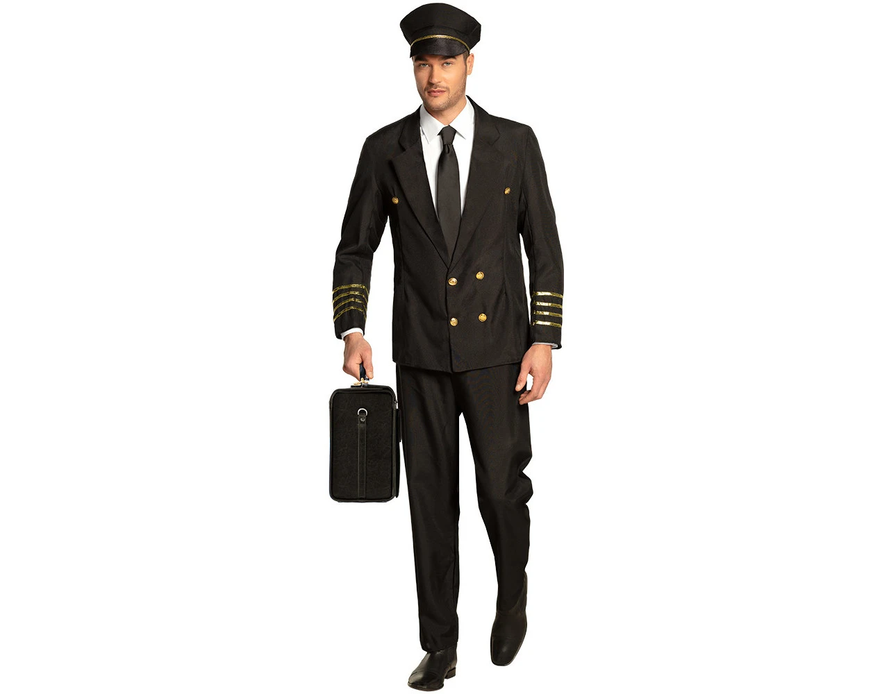 Inhoud: piloten colbert, stropdas, broek, plastron en pet