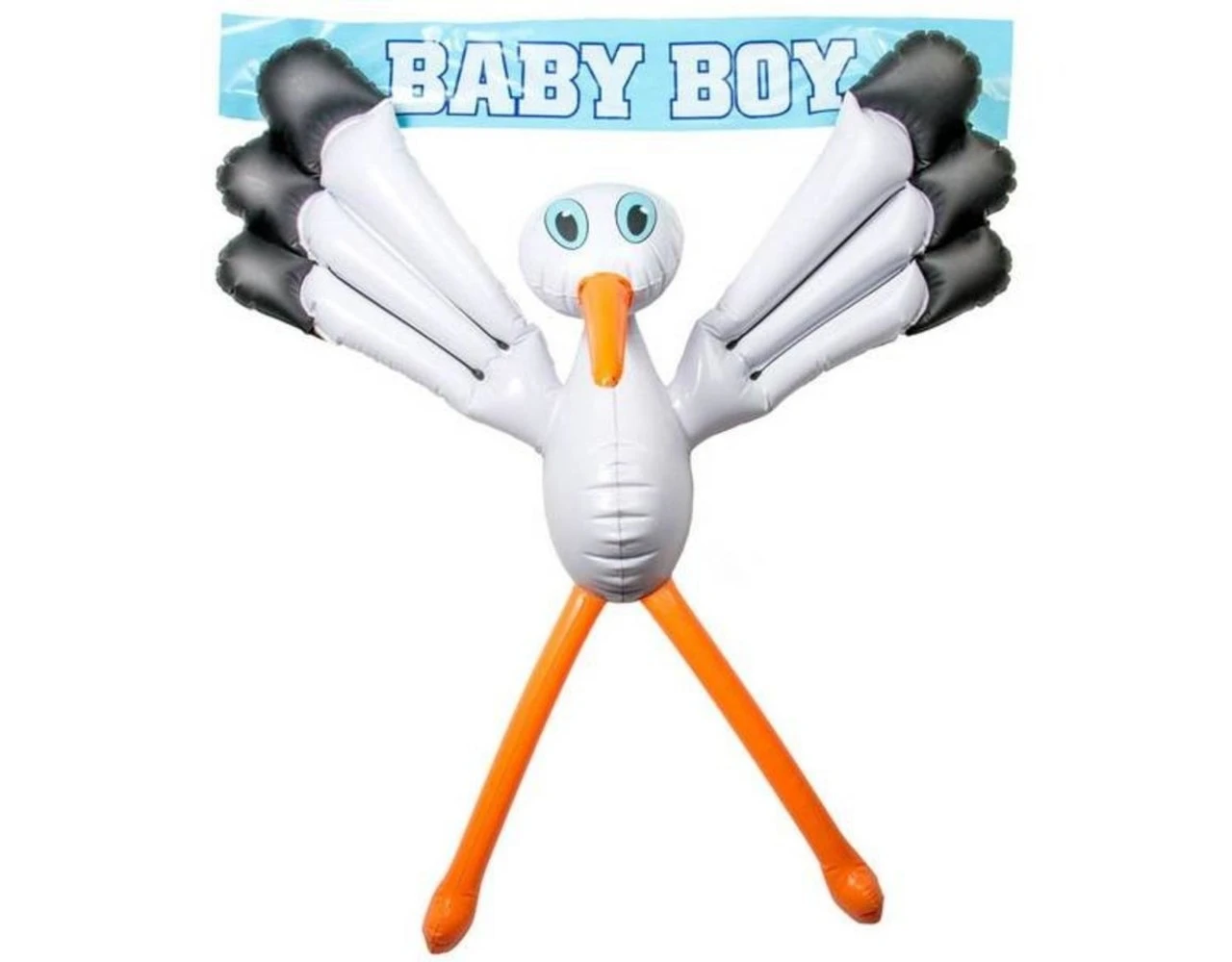 Vier de geboorte van een nieuwe zoon of dochter met deze leuke opblaas ooievaar. Inhoud: 1 opblaasbaar artikel. De ooievaar plak je makkelijk op het raam met de zuignappen en hij heeft 2 raamdecoraties voor een jongen en een meisje. Deze opblaasbare ooievaar is 75 cm. Het artikel is gemaakt van plastic.