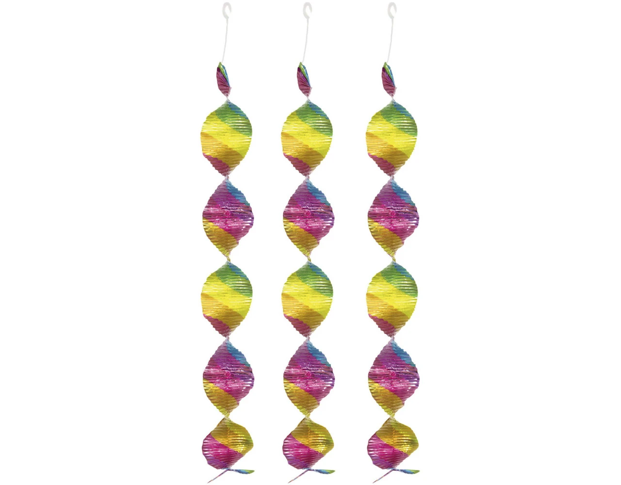 Spiraalversiering Regenboog – 4 stuks. Inhoud: 4 stuks hangdecoratie. Bijvoorbeeld te gebruiken tijdens de volgende feestgelegenheid/feestgelegenheden: Verjaardag, Kinderfeestje. Lengte van het artikel: 60 cm. Het artikel is gemaakt van plastic.