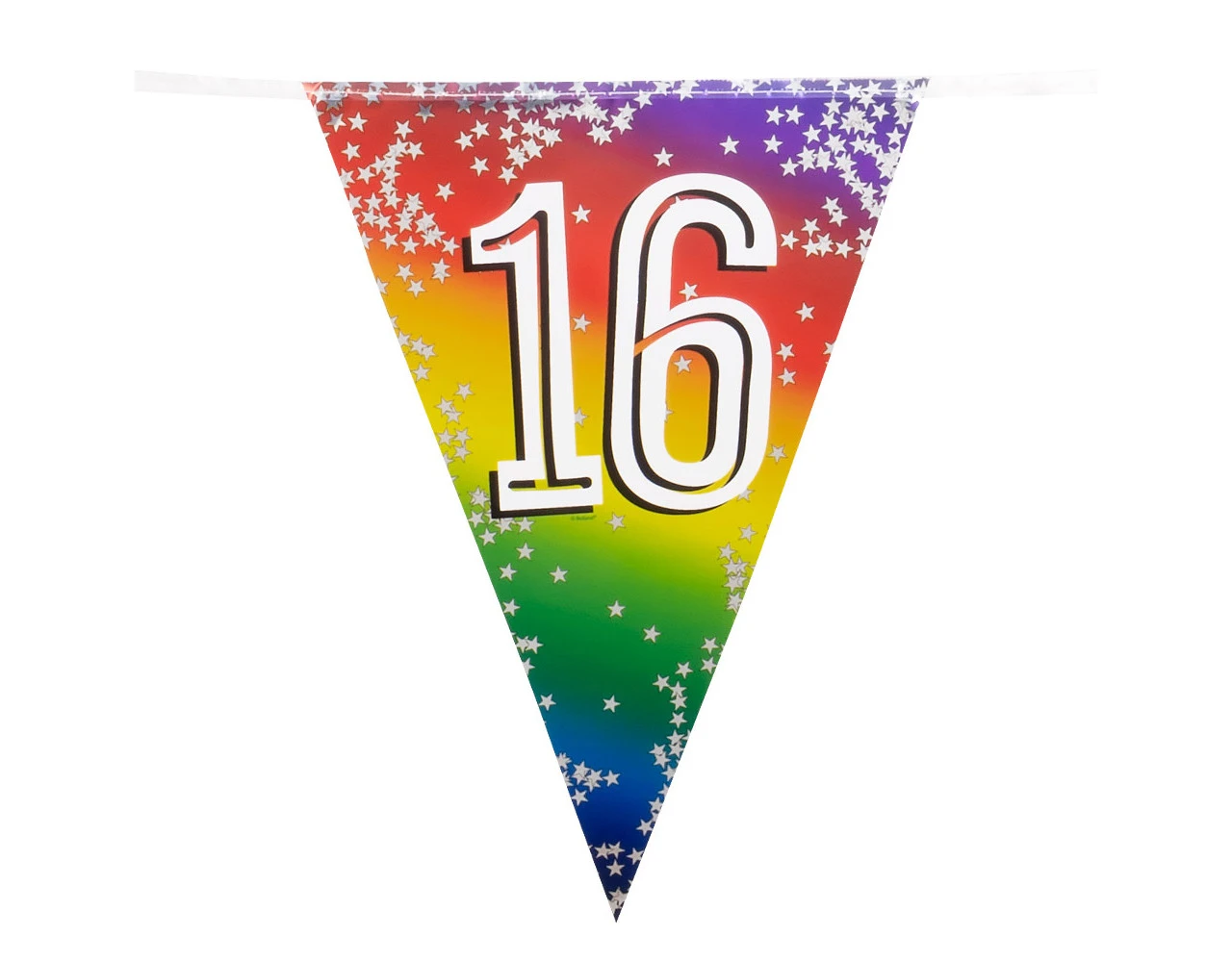 Inhoud: 15 vlaggen (verdeeld over 6 meter en 2 meter koord aan beide zijden)